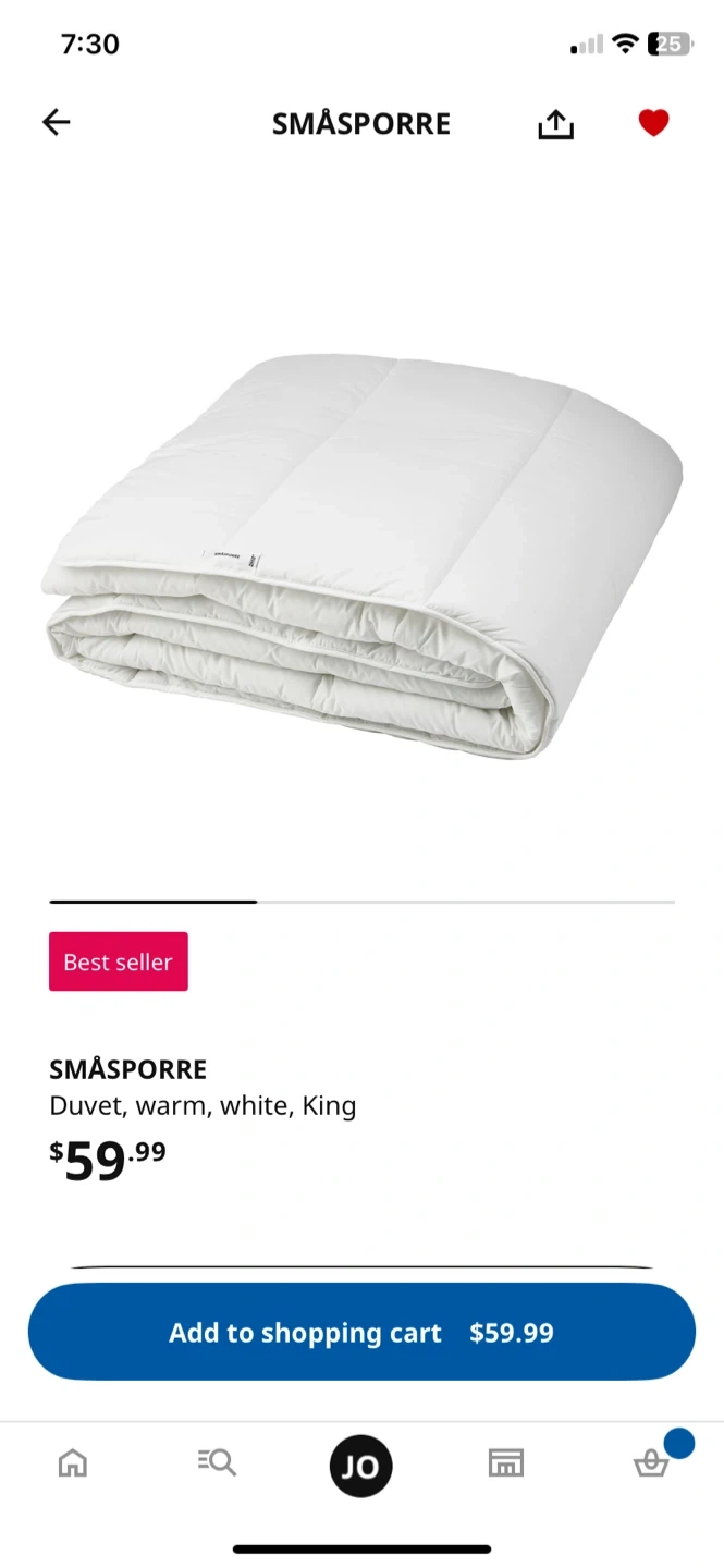 I'm selling an IKEA SMÅSPORRE duvet in King size. It is in brand new condition and was not used but was washed in the washer once. This duvet is warm and easy to care for. It's machine washable at 60°C, a temperature that kills dust mites.
