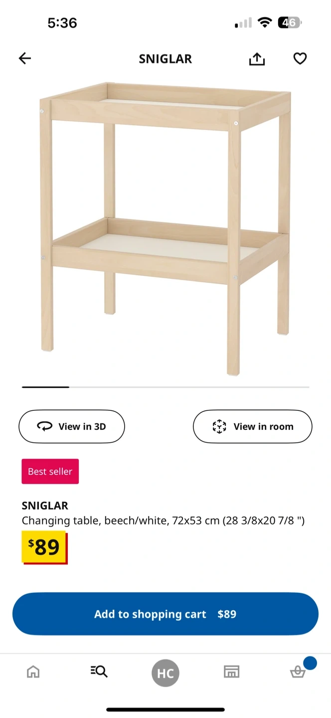 26Selling an Ikea SNIGLAR changing table in beech/white. It measures 72x53 cm (28 3/8x20 7/8 "). Originally bought for $89!