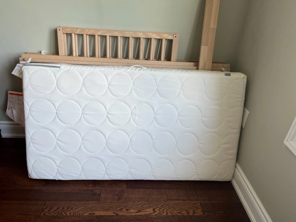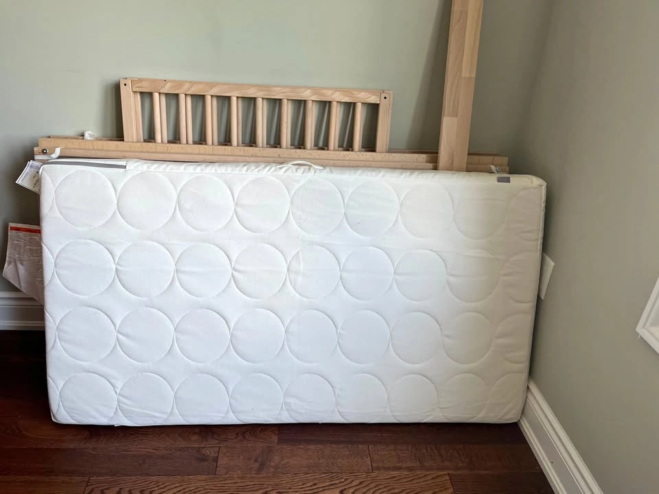 Ikea Sniglar Crib with Ikea Mattress. Used less than 10 times. This stayed at grandma's house for naps and overnight stays. Can be picked up in Scarborough or Ancaster.