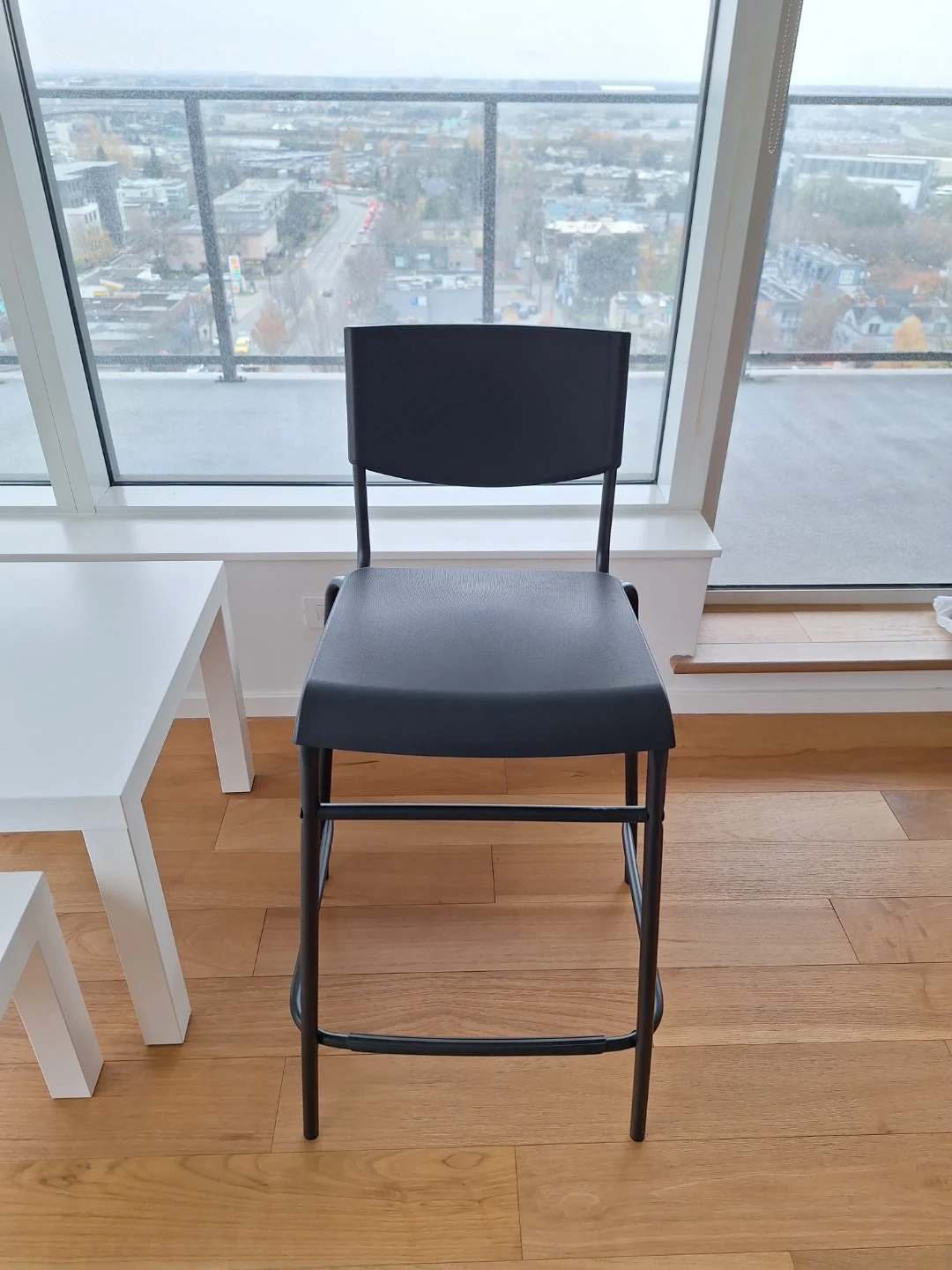 76Selling 2 black IKEA STIG bar stools It's in great shape and minimal used. The dimensions are approximately 33 cm (13") wide, 30 cm (11 ¾") deep, and 90 cm (35 3/8") tall. Perfect for your kitchen island or bar area!