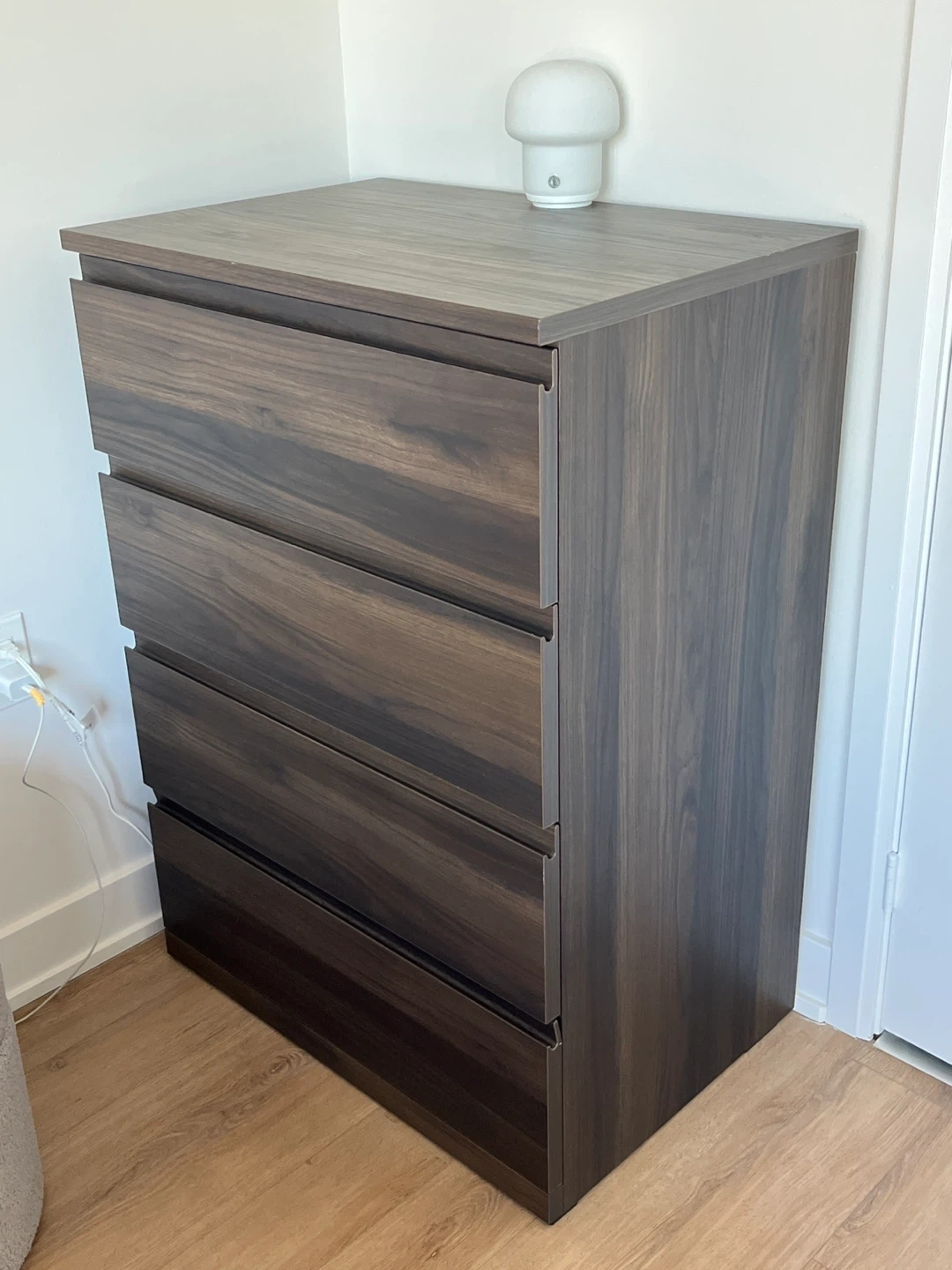 Selling a gently used IKEA Storklinta 4-drawer dresser. It's in good condition and has a nice brown/black finish. Perfect for adding some extra storage to your bedroom! Bought for $199 - pick up only