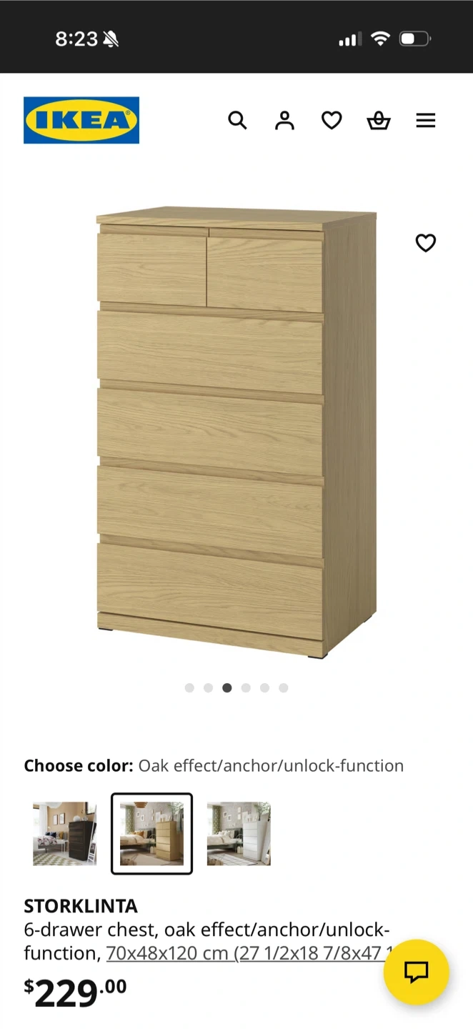 435Selling an IKEA STORLINTA 6-drawer chest in oak effect. It's in great condition and ready for a new home! Dimensions are 70x48x120 cm (27 1/2x18 7/8x47 1/4") Originally bought for $229 I have two of them Each $100 If you get both, $170