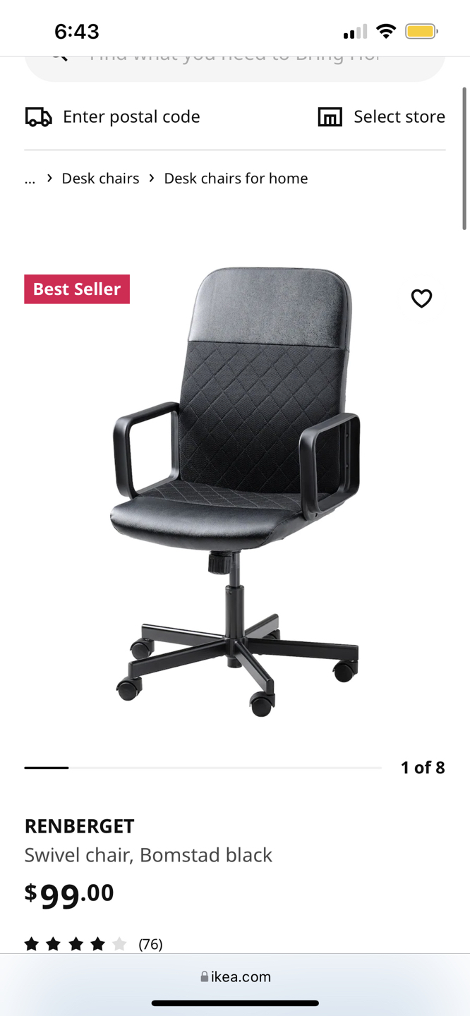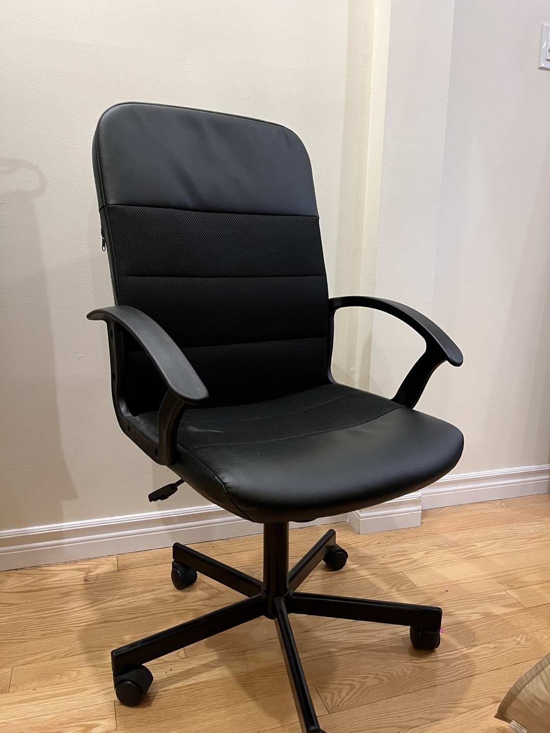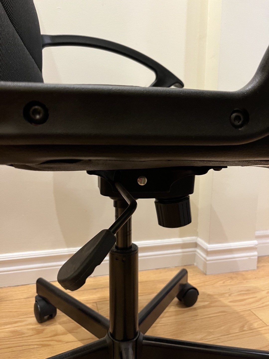 99This swivel chair has adjustable tilt tension that allows you to adjust the resistance to suit your movements and weight. To adjust the tilt tension, turn the knob under the seat to increase or decrease the resistance. The shape of the armrests provides good support and helps you find a good sitting position. The stitching pattern on the backrest gives the chair an elegant and clean look. You sit comfortably since the chair is adjustable in height. The safety casters have a pressure-sensitive brake mechanism that keeps the chair in place when you stand up, and releases automatically when you sit down. Soft yet hard-wearing coated fabric is easy to wipe clean.