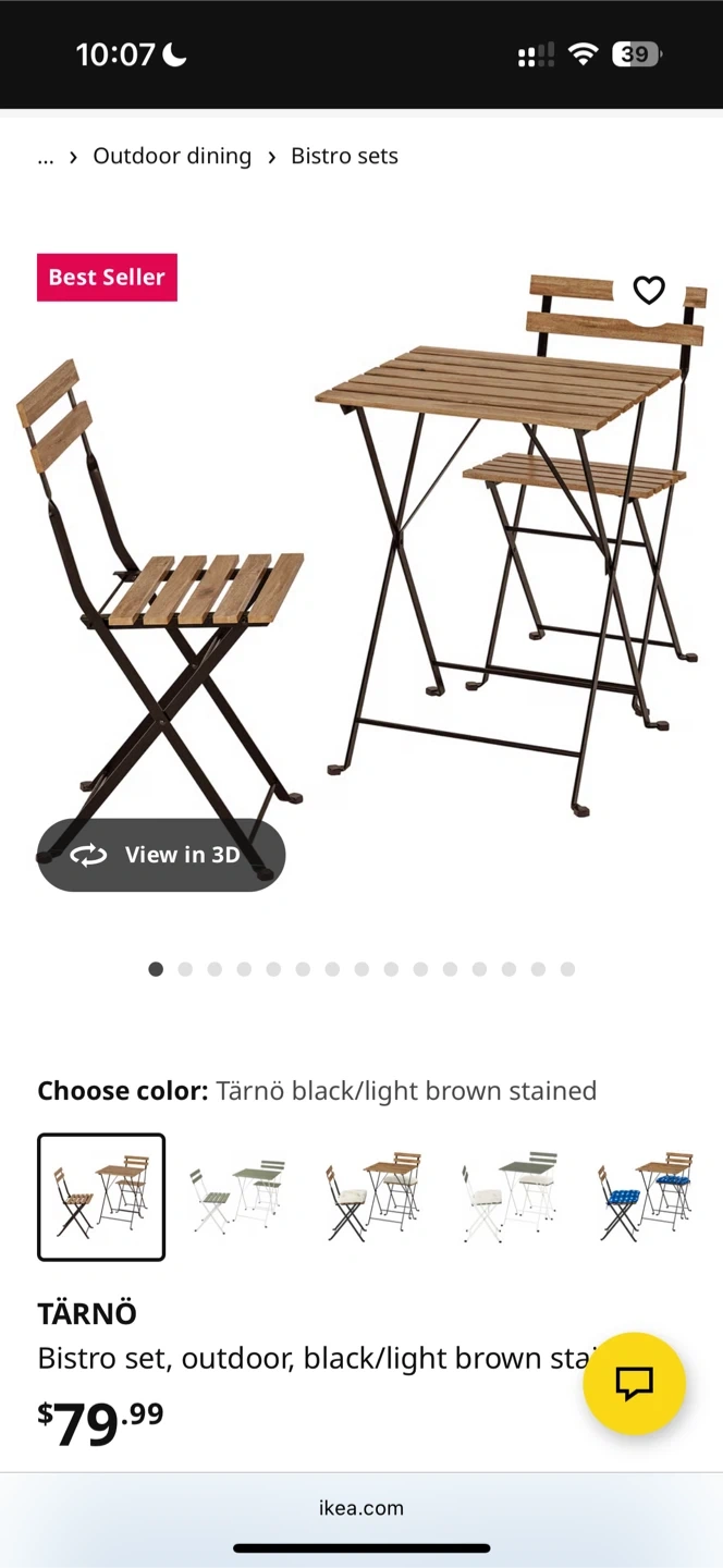 85Get ready to enjoy your outdoor space with this IKEA TÄRNÖ bistro set! The set includes a table and two chairs, perfect for a cozy breakfast or evening drink. The black and light brown stained finish gives it a classic look that will complement any balcony or patio