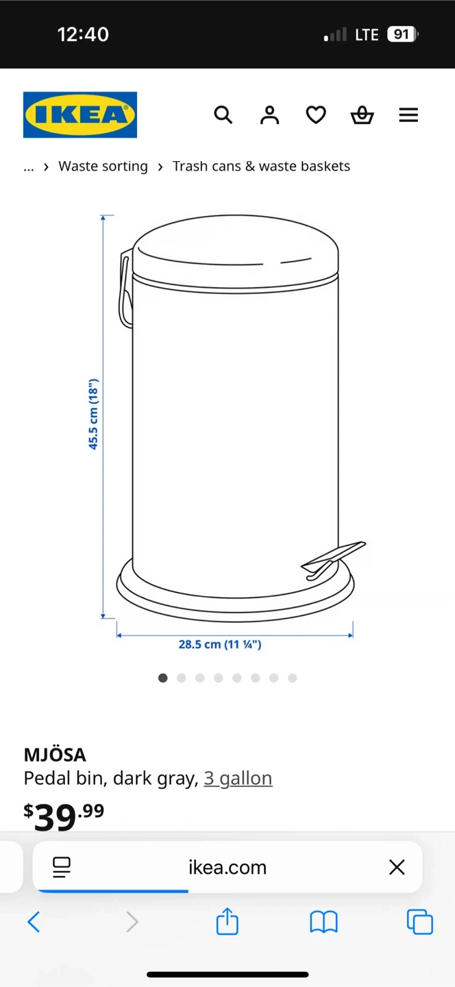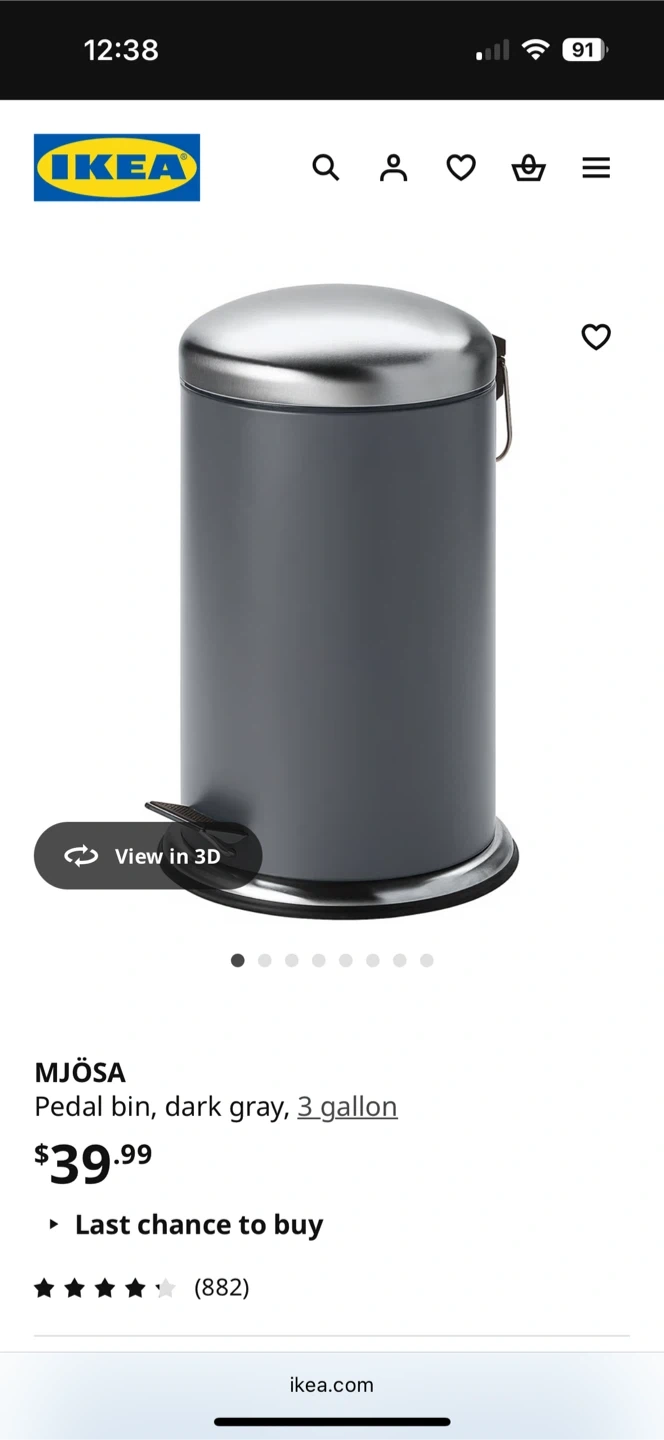 Selling an IKEA MJÖSA pedal bin! It's a 3-gallon bin, perfect for small spaces. It's in great condition and ready for a new home! The original price was $39.99.