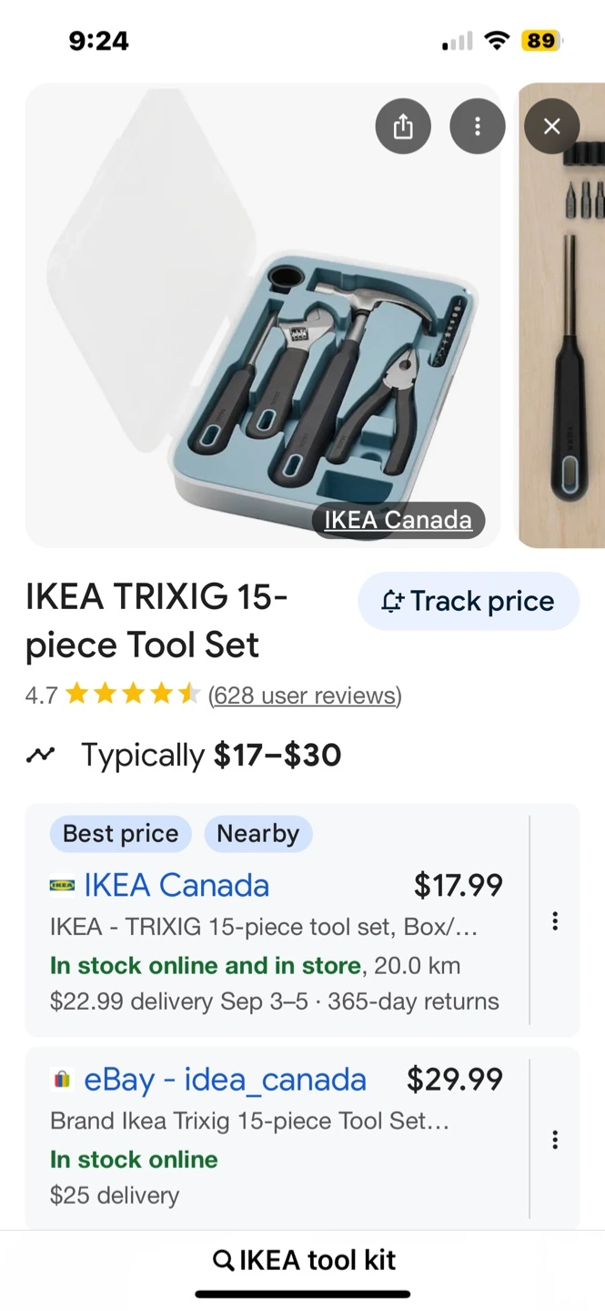 Selling an IKEA TRIXIG 15-piece tool set. It includes a variety of essential tools for small jobs around the house. Great to have on hand for quick fixes and projects