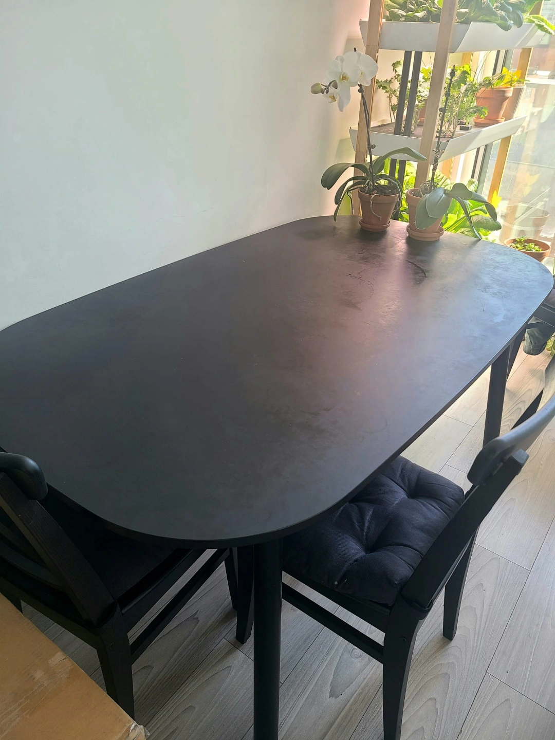 IKEA VEDBO - black oval dining table. Original retail for $500 Easy assembly. Tools will be provided. Dismantled the legs for easier transportation. Pick up Only at Distillery district.