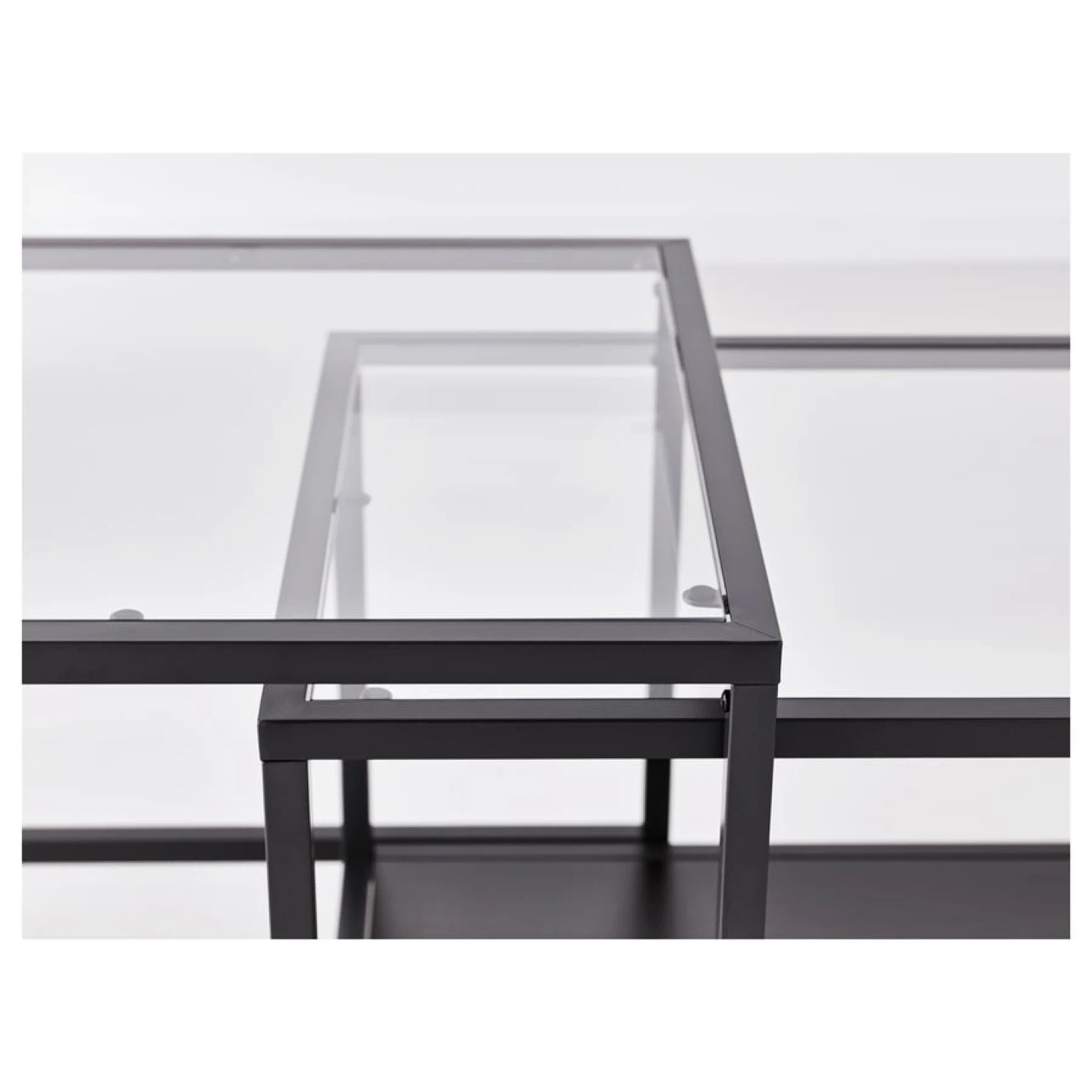 10Selling a set of IKEA Vittsjö nesting tables in black and glass. The larger table is 90x45 cm and 44 cm tall, while the smaller one is 50x50 cm and 49 cm tall. Great for adding a modern touch to your living space!