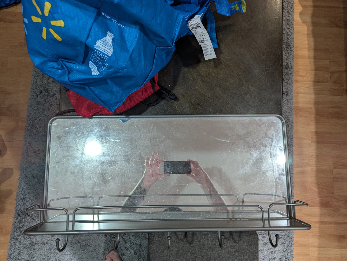 Selling a wall mirror that comes with a shelf and hooks. It's perfect for entryways or bathrooms. The mirror is in great condition and ready to be mounted!