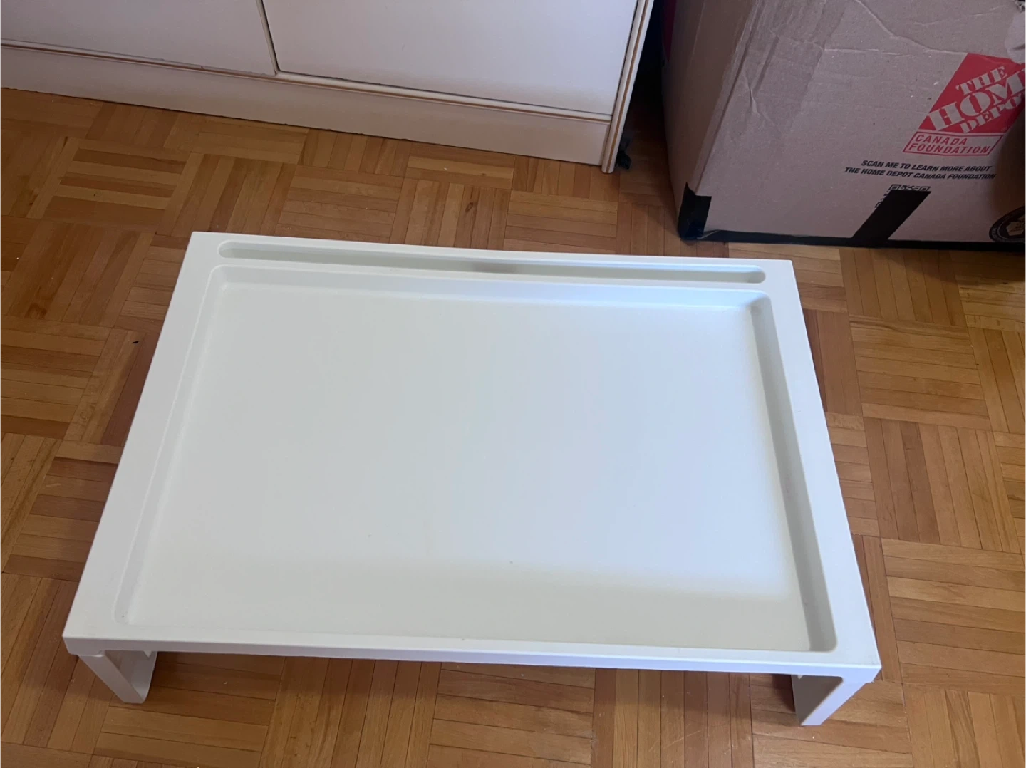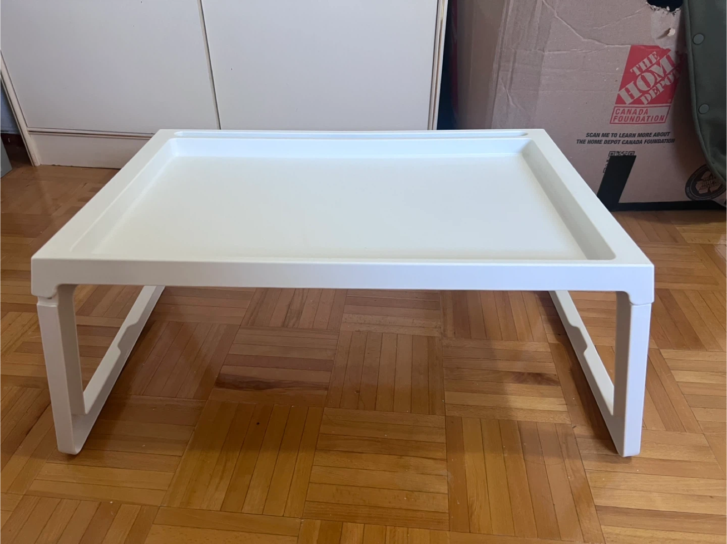 Selling a handy IKEA bed tray table! It's perfect for breakfast in bed, working on your laptop, or just having a convenient surface. It folds flat for easy storage when you're not using it. It's in great shape!