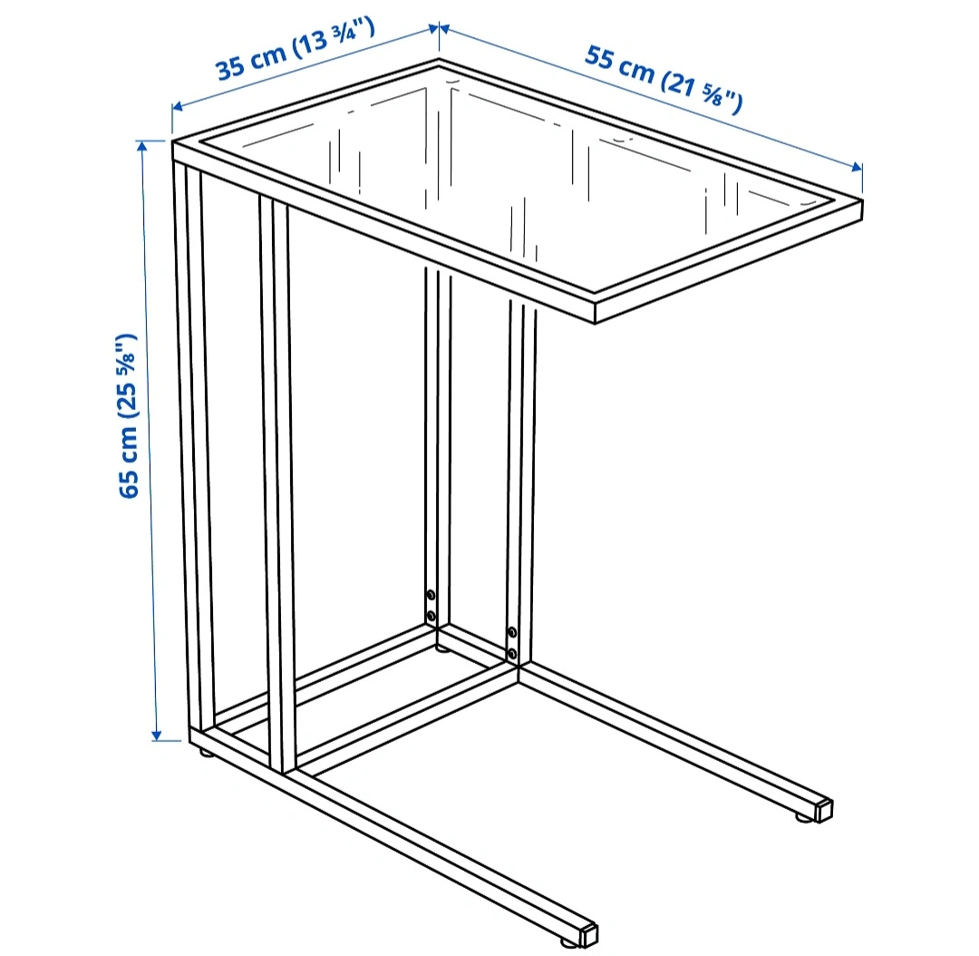 10Selling a handy side table from IKEA! It's perfect for using as a laptop table or just keeping things within easy reach while you're relaxing on the couch. Dimensions: - 35 cm (13 3/4") - 55 cm (21 5/8") - 65 cm (25 5/8")