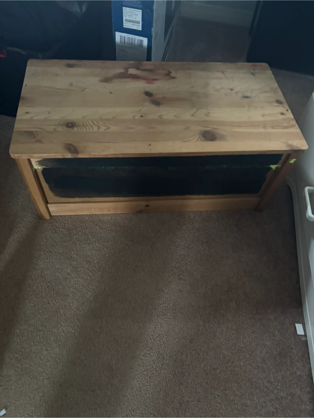 Selling a wooden storage trunk or bench. It's made of light-colored wood Solid box with removable lid. Has been partially painted. as shown in the photos. Ready to use or decorated
