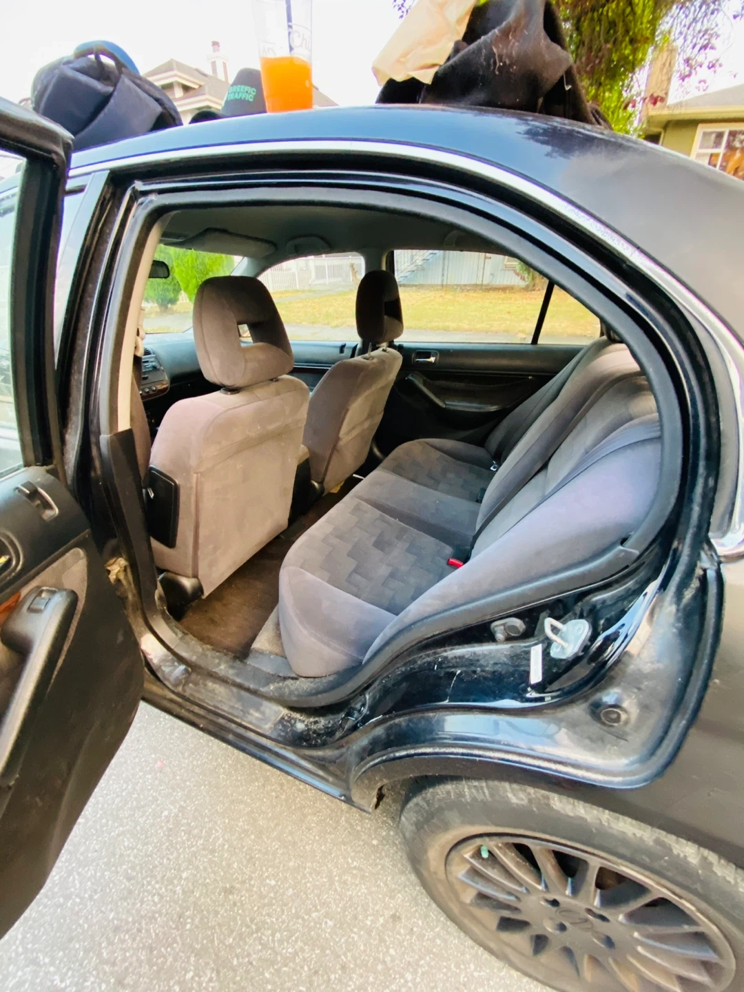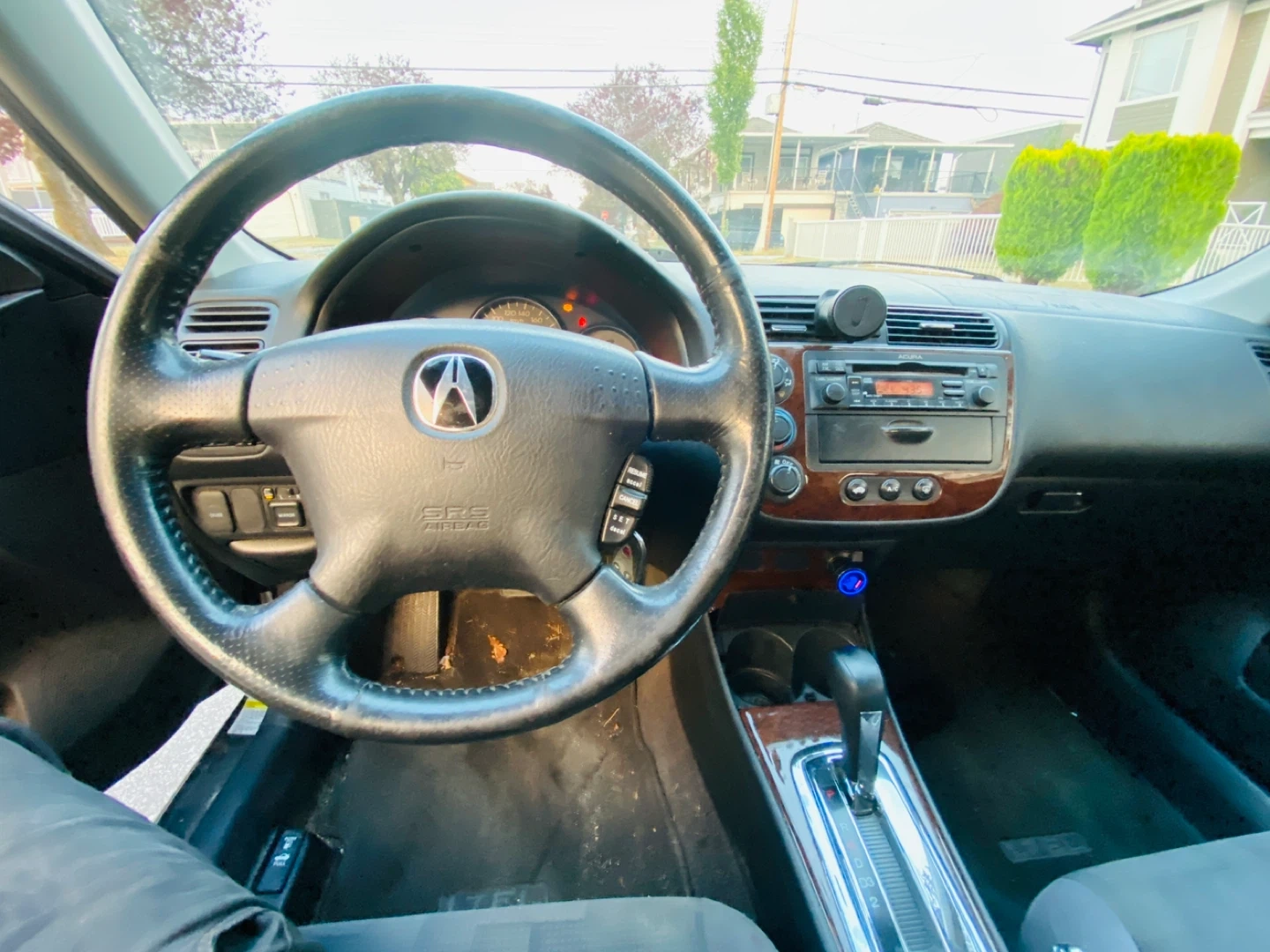 This is a black Acura el sedan. It's a four-door car with a black interior and cloth seats. The dashboard features a wood grain trim.