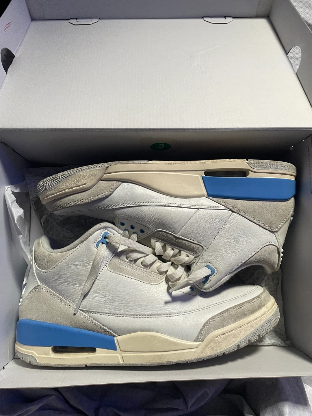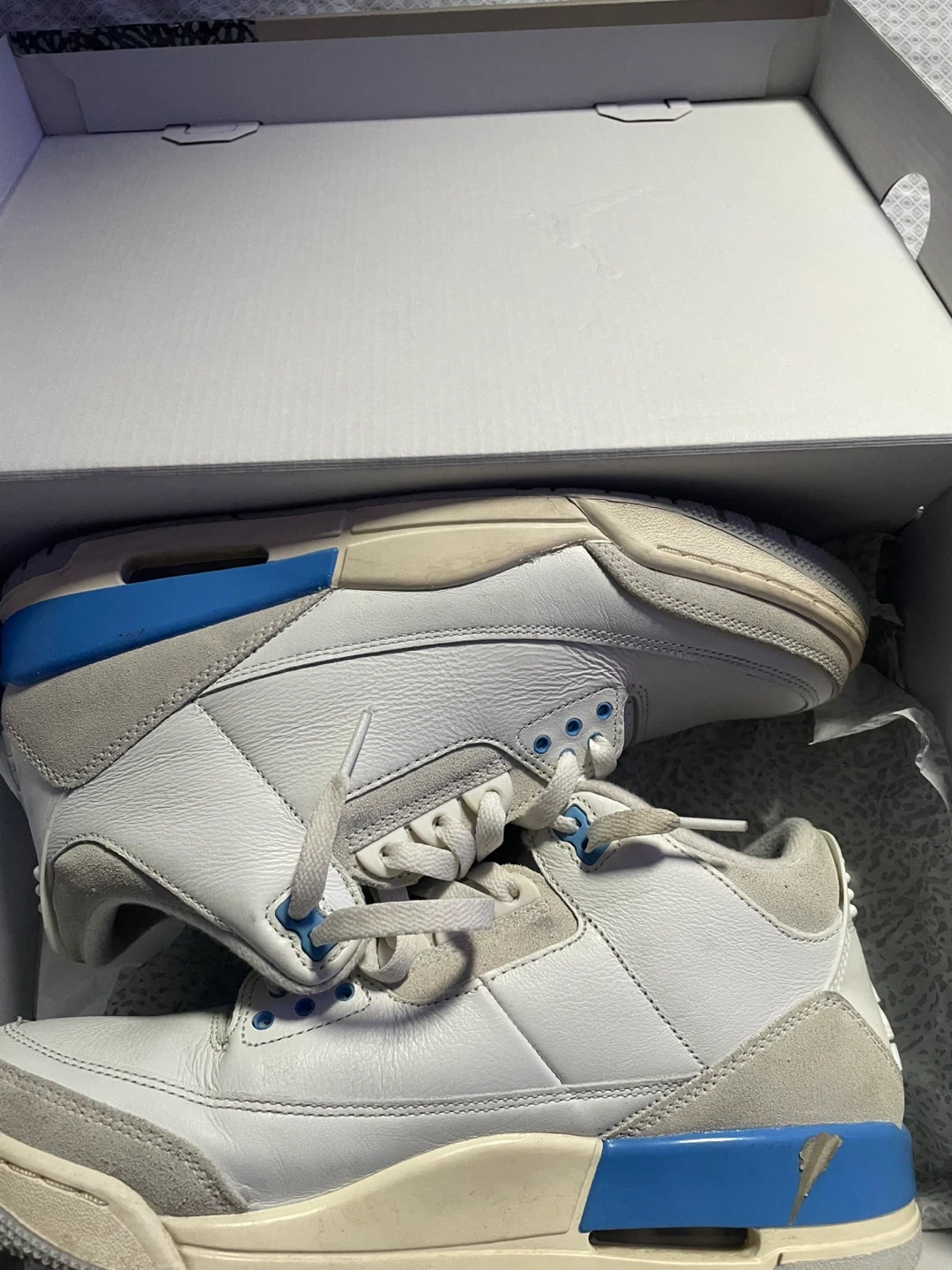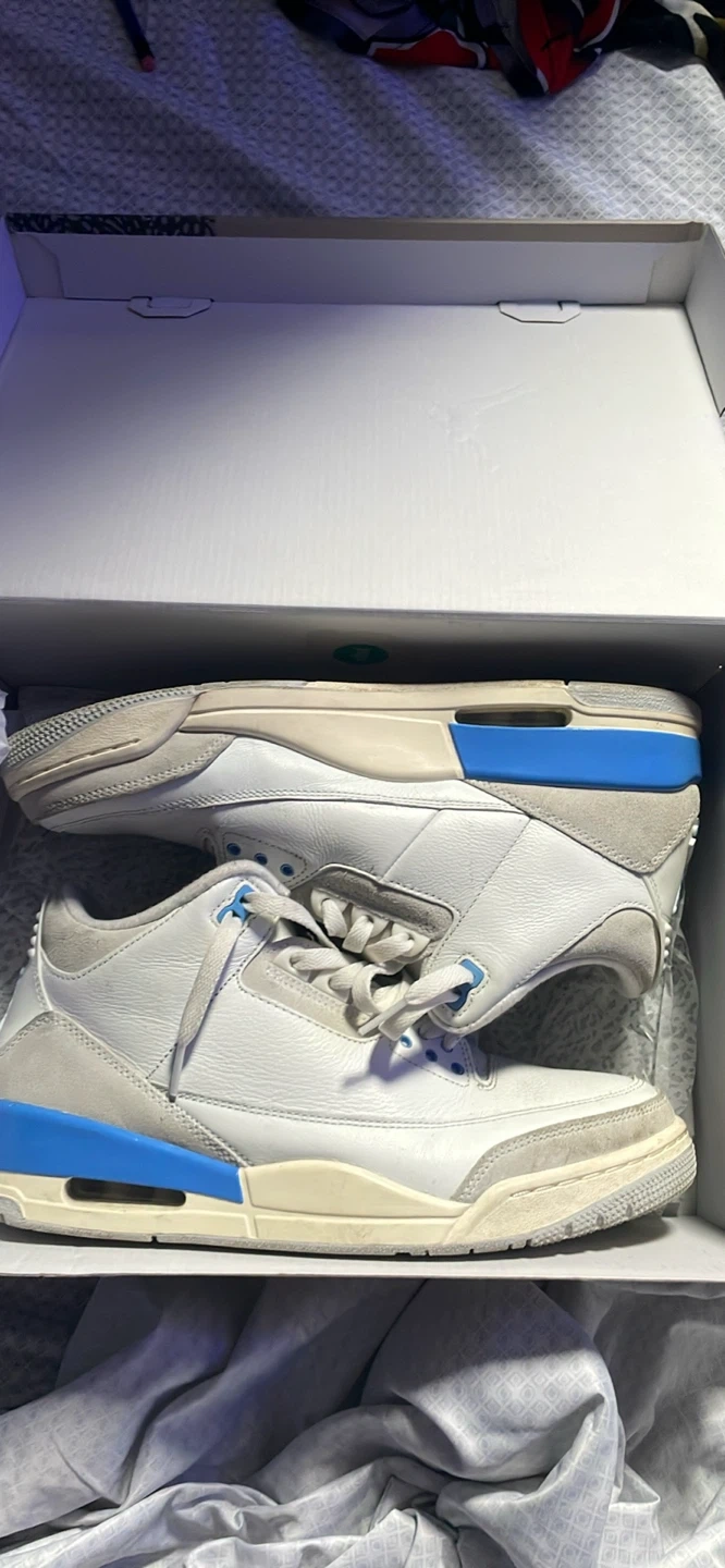 Buy & SellJordan 3Jordan 3$65Selling a pair of Jordan 3 Retro UNC shoes. They come with the original box. Please see the photos for conditionWHERE TO MEETCheck LocationView MapSELLERkamranLakeview100 reviews0 chats·0 favorites·33 viewsSEND CHAT TO SELLERHi kamran! I’m interested in your listing.Hi kamran! I’m interested in your listing.Get the Karrot app to chatSign In to chat