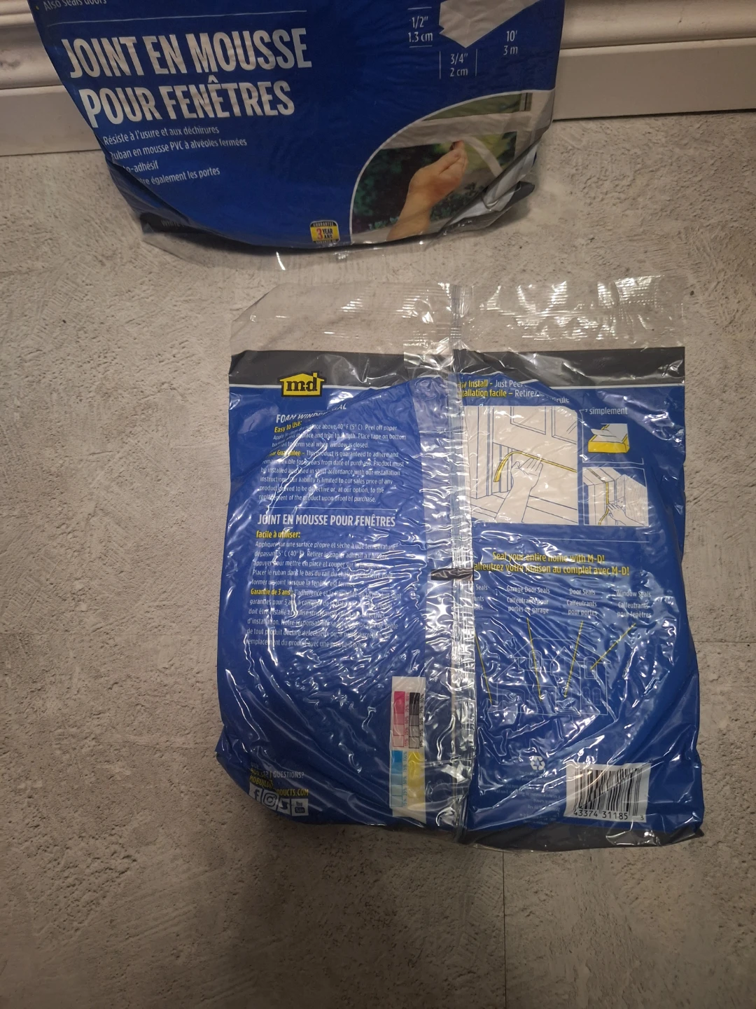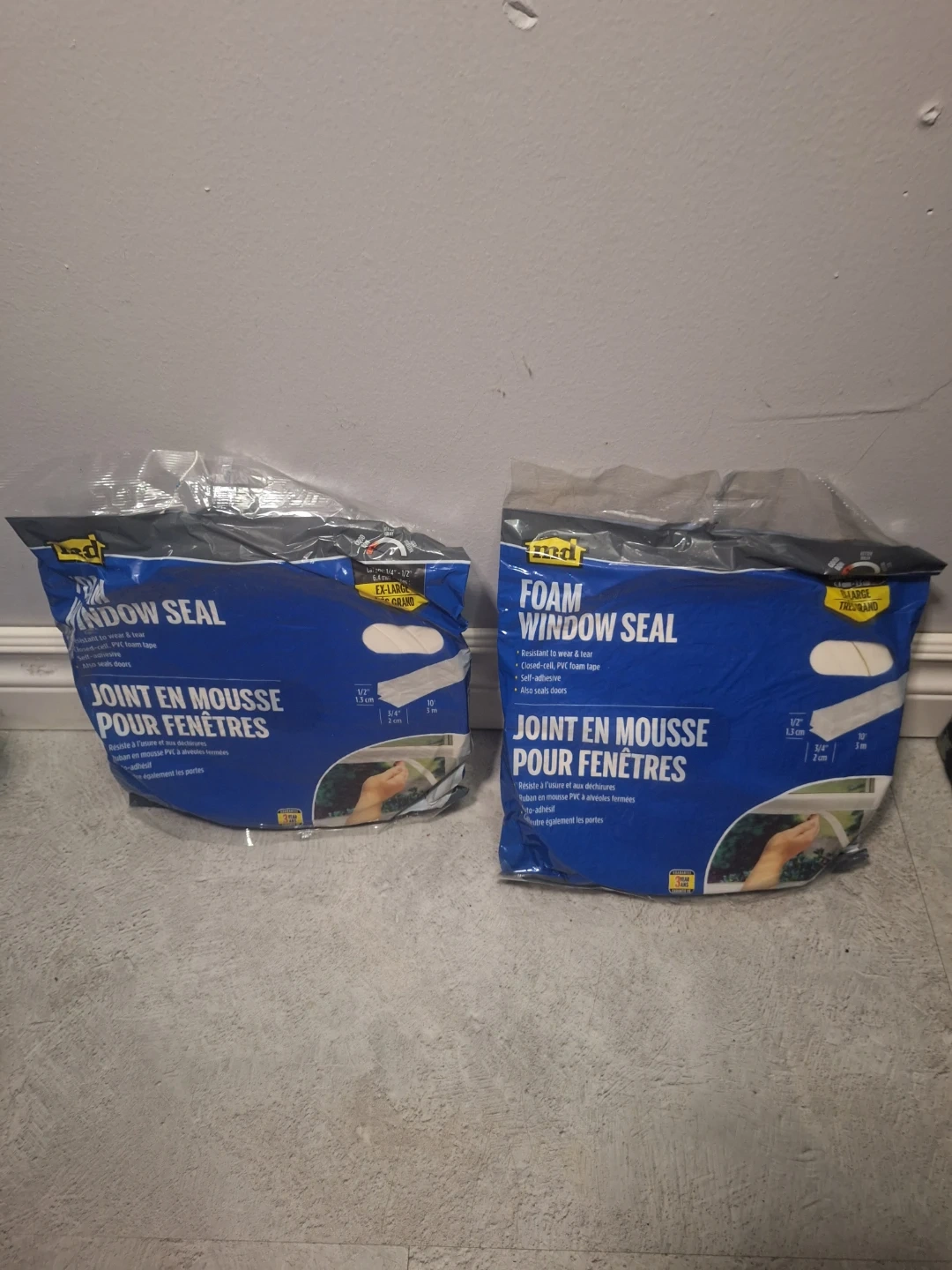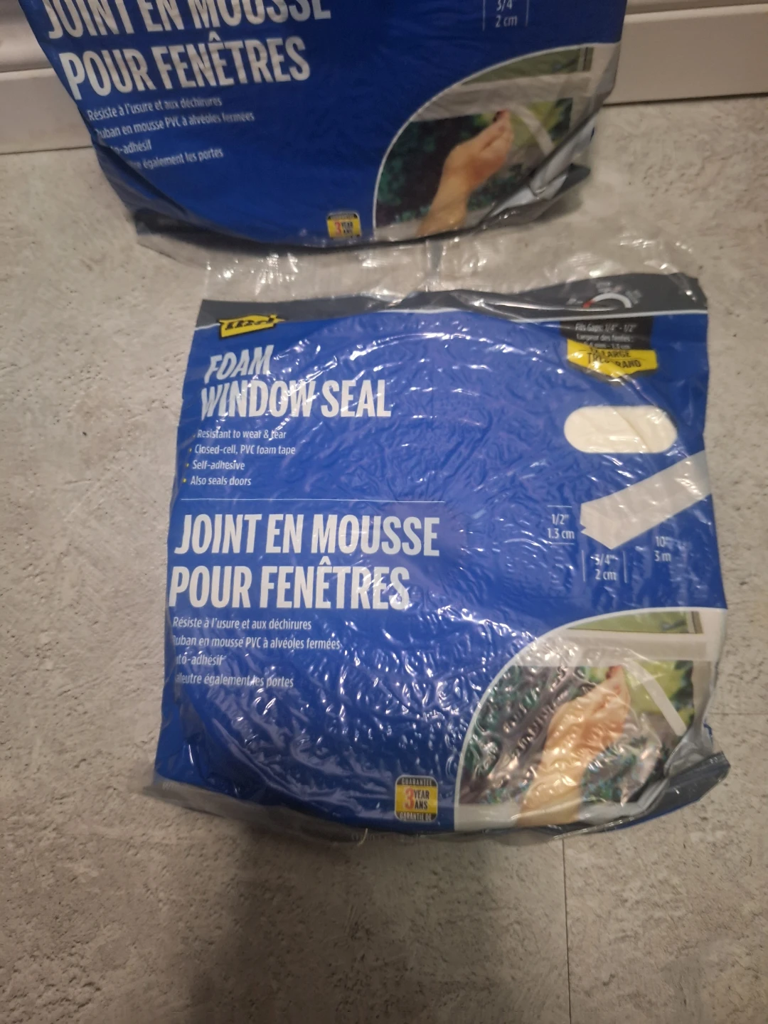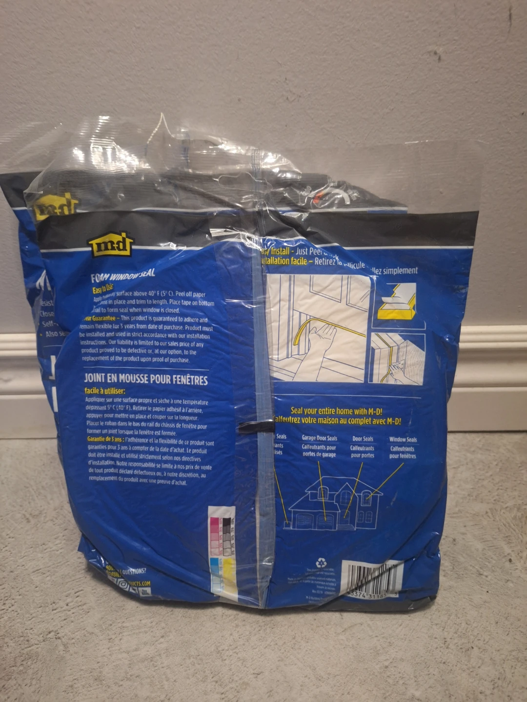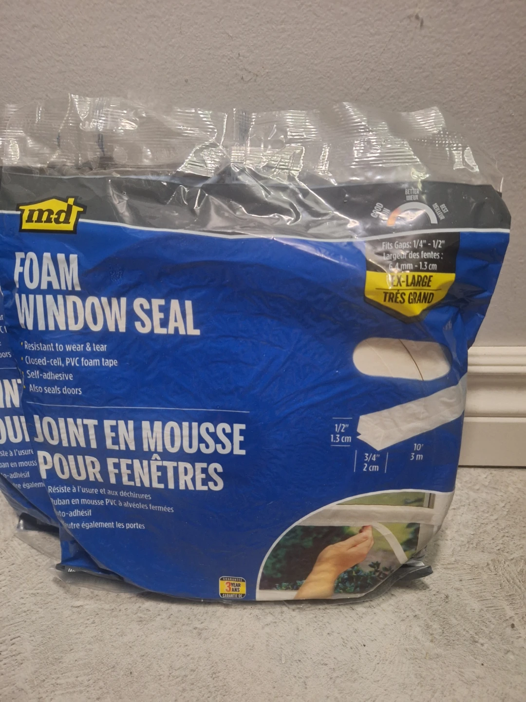 This self-adhesive foam tape seals windows and doors to block drafts. It's resistant to wear and tear, and easy to apply. A roll measures 10' x 3/4".