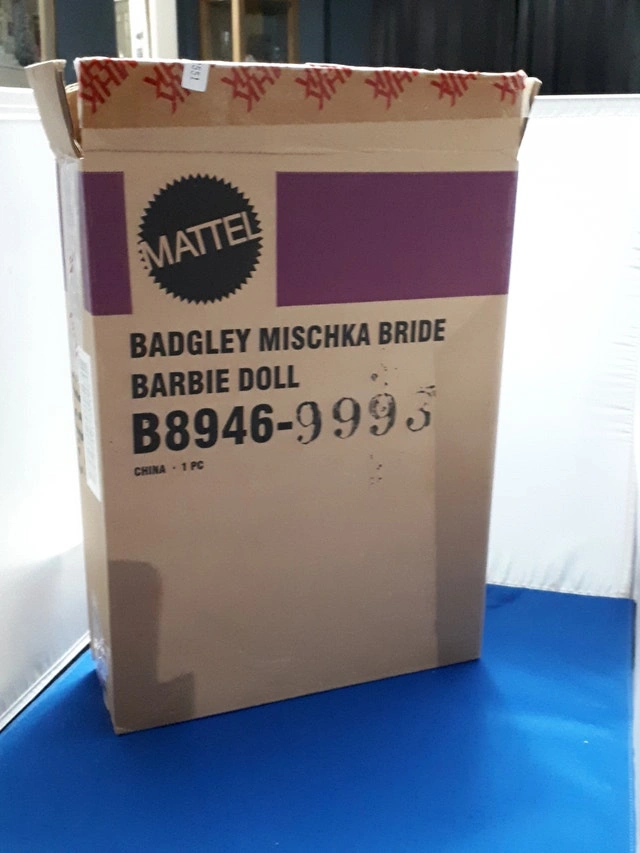 Brand new in shipper, this Gold Label Collector Doll features the Badgley Mischka Bride Barbie B8946. This chic modern bride is contemporary yet wonderfully romantic. The bodice has opulent iridescent beading, rhinestones, and embroidery, leading to a full skirt of satin-faced silk organza over a taffeta underskirt. She comes with crystal chandelier earrings, a solitaire rhinestone ring, a white headband, a white velvet evening bag, and pearl-white high-heel shoes. Collection: Designer Brides™ Barbie® Dolls. Label: Gold Label®. Release Date: 5/1/2003. SKU #: B8946. Other Barbies also available. Smoke-free home. Public pick up in the Walkers and Upper Middle area of Burlington. Prices are firm. Check out my other posts.