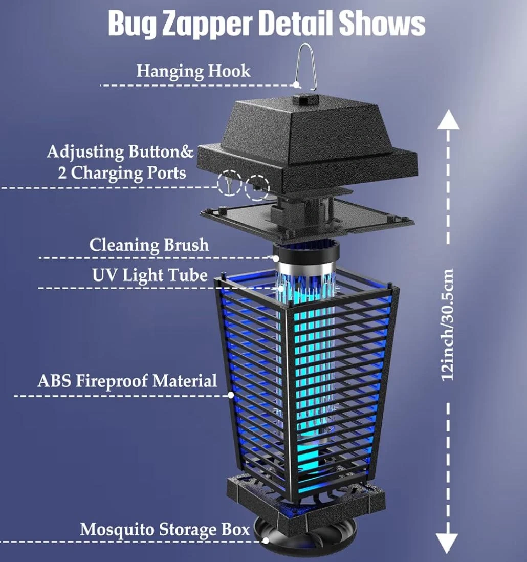 I'm selling a brand new PALONE Solar Electric Bug Zapper, still in its original box! It features a hanging hook, adjusting button, and 2 charging ports. Also included is a cleaning brush. The zapper uses a UV light tube and is made of ABS fireproof material. Dimensions are approximately 12 inches/30.5 cm in height. Safe for kids and pets, non-toxic, and non-harmful!