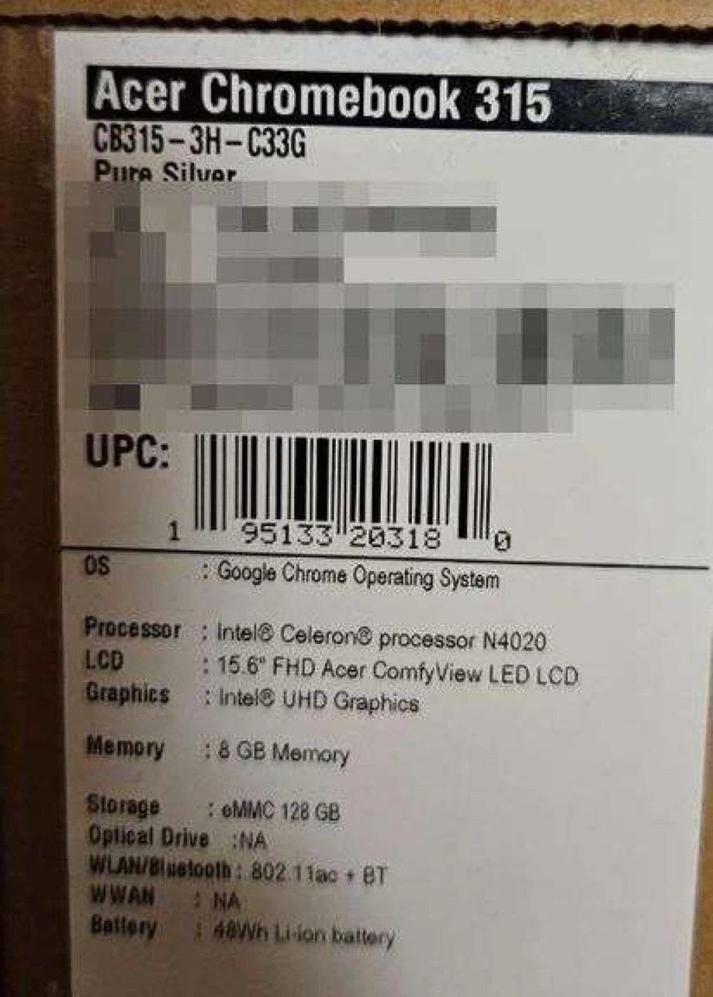 ACER 15.6" CHROMEBOOK - 128GB SSD, 8GB RAM