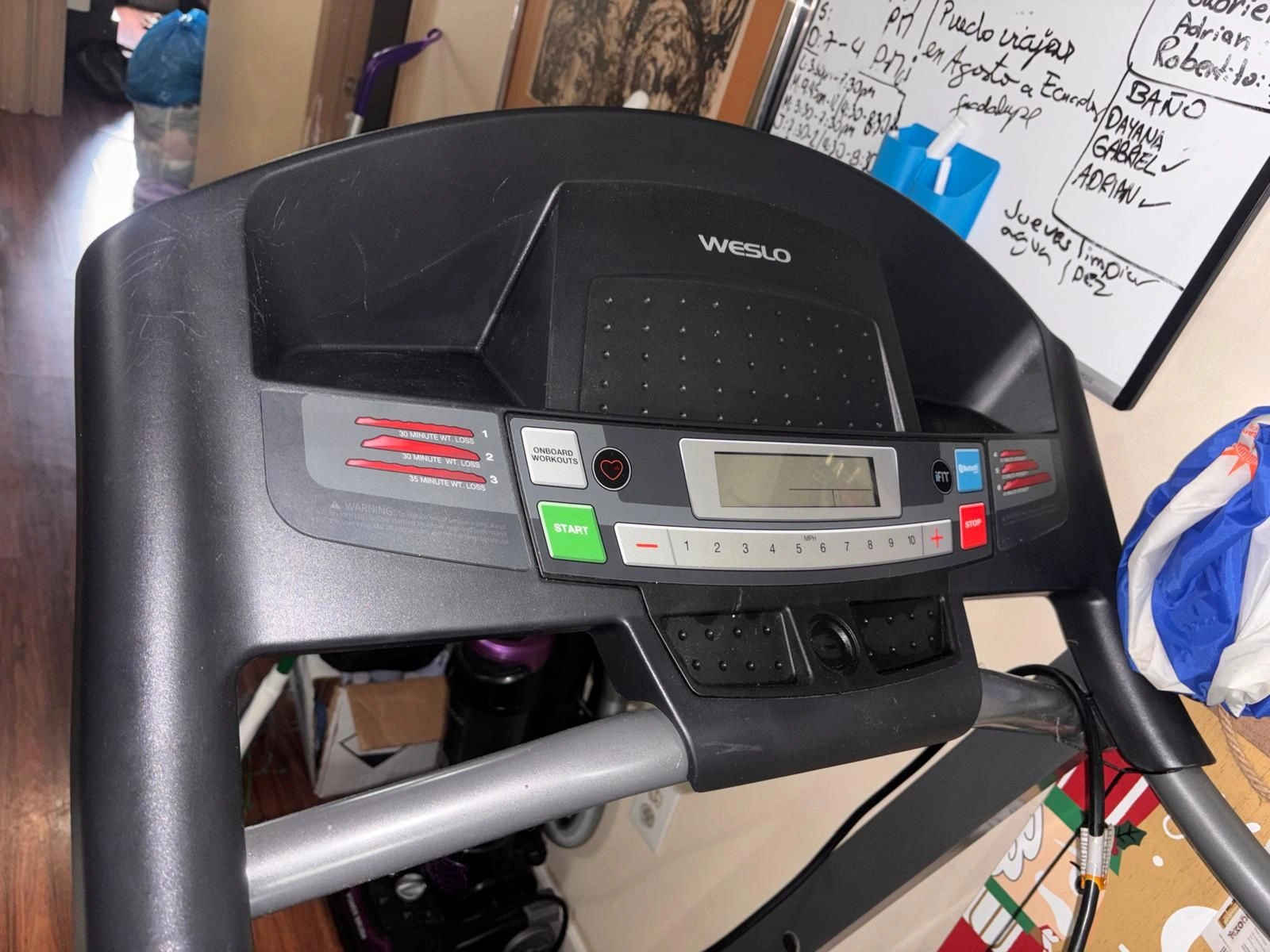 Excellent condition ProForm 5000 treadmill. Features a powerful motor and a large, comfortable running deck. Perfect for all your cardio workouts at home. We've loved using it, but we're redoing our home gym and it needs a new home. It's a sturdy and reliable machine.