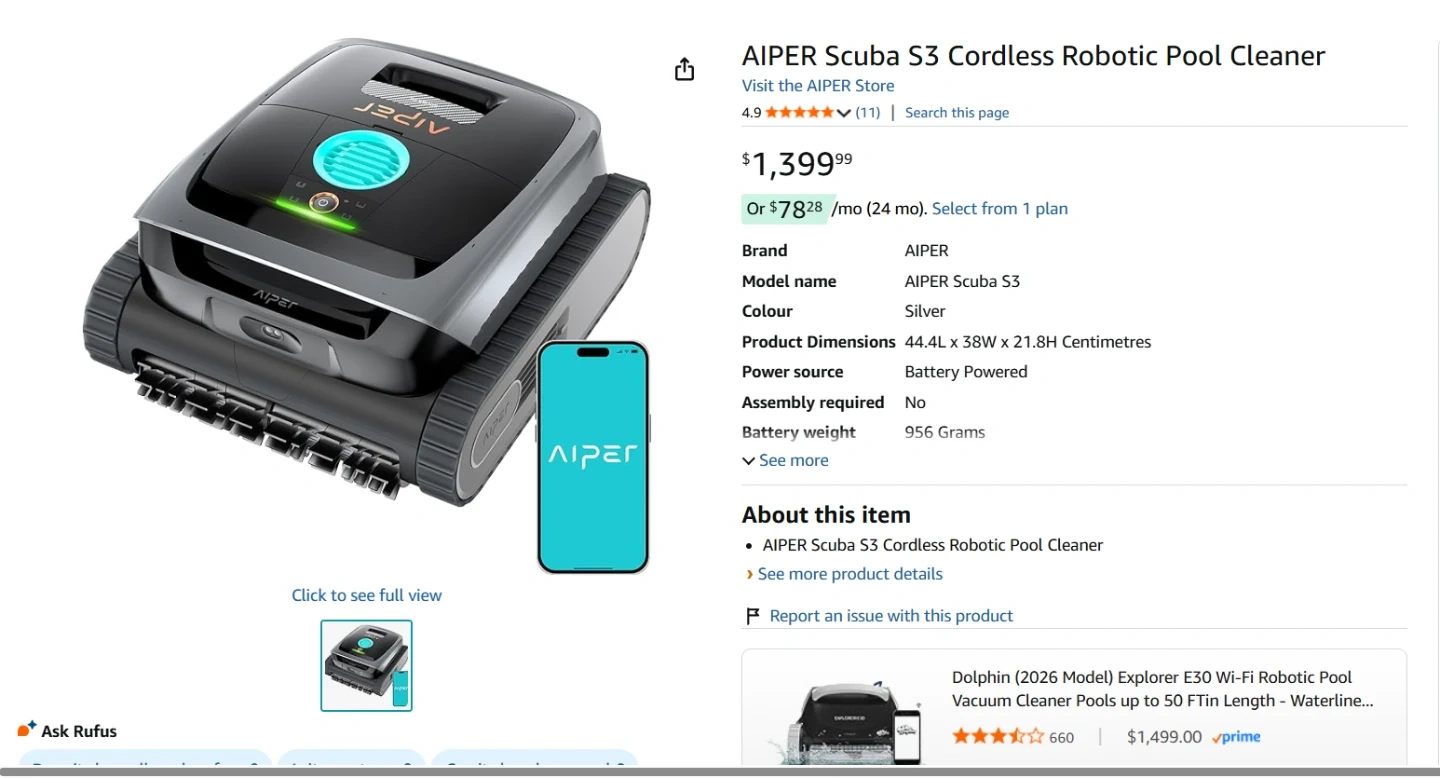 Aiper Scuba V3 Cordless Robotic Pool Cleaner BNIB