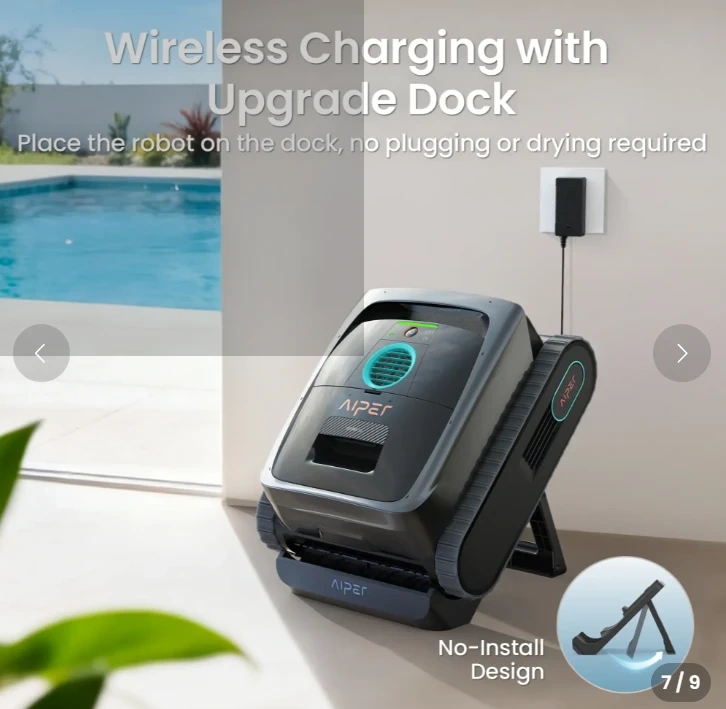 No Installation Wireless Charging Dock: Wirelessly charges Scuba V3 with no setup required. Simply place it on the dock to start safe, plug-free charging—no drying or exposed connectors. The dock also keeps the robot stored neatly when not in use.