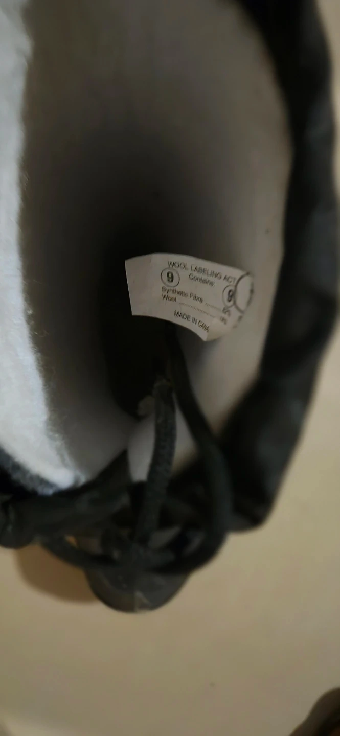 Black Baffin Technology boots. Made in Canada. Contains synthetic fibre and wool.