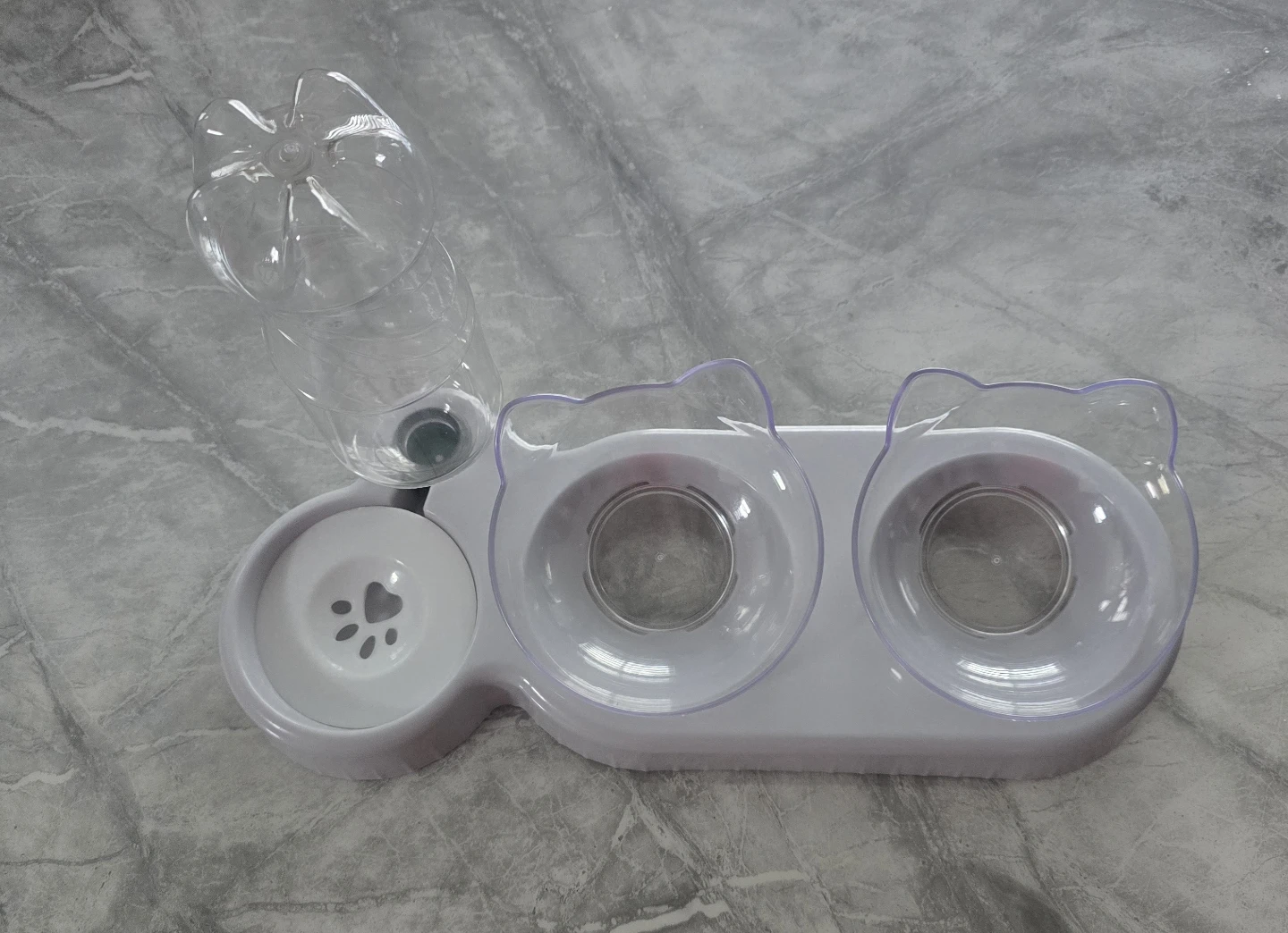 Double Bowl Cats Feeding Watering Bowl Space Saving Automatic Eatting Watering Bowl for Indoor Feeding Drinking Bowl
