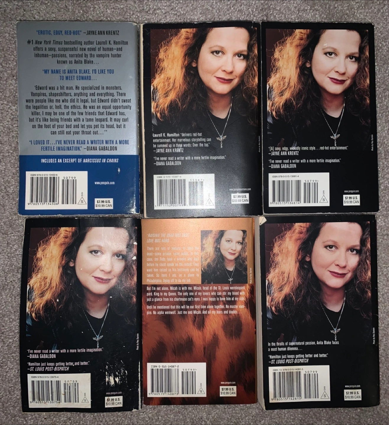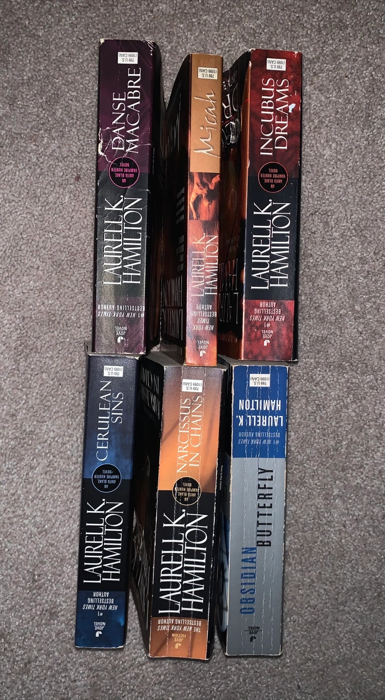 Selling a set of Laurell K. Hamilton's Anita Blake, Vampire Hunter novels. Includes Obsidian Butterfly, Narcissus in Chains, Cerulean Sins, Incubus Dreams, Micah, and Danse Macabre. Great for fans of urban fantasy!