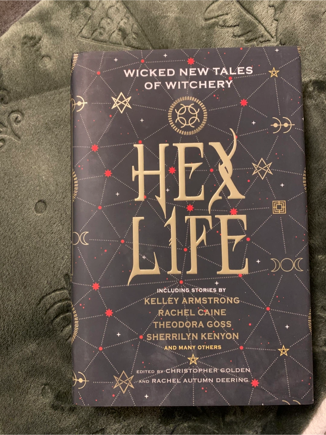 Selling a copy of Hex Life: Wicked New Tales of Witchery. It's a collection of eighteen tales of witchcraft from the Mistresses of Magic, including stories by Kelley Armstrong, Rachel Caine, and Sherrilyn Kenyon. Edited by Christopher Golden and Rachel Autumn Deering, it's a great read for anyone interested in wicked new tales of witchcraft
