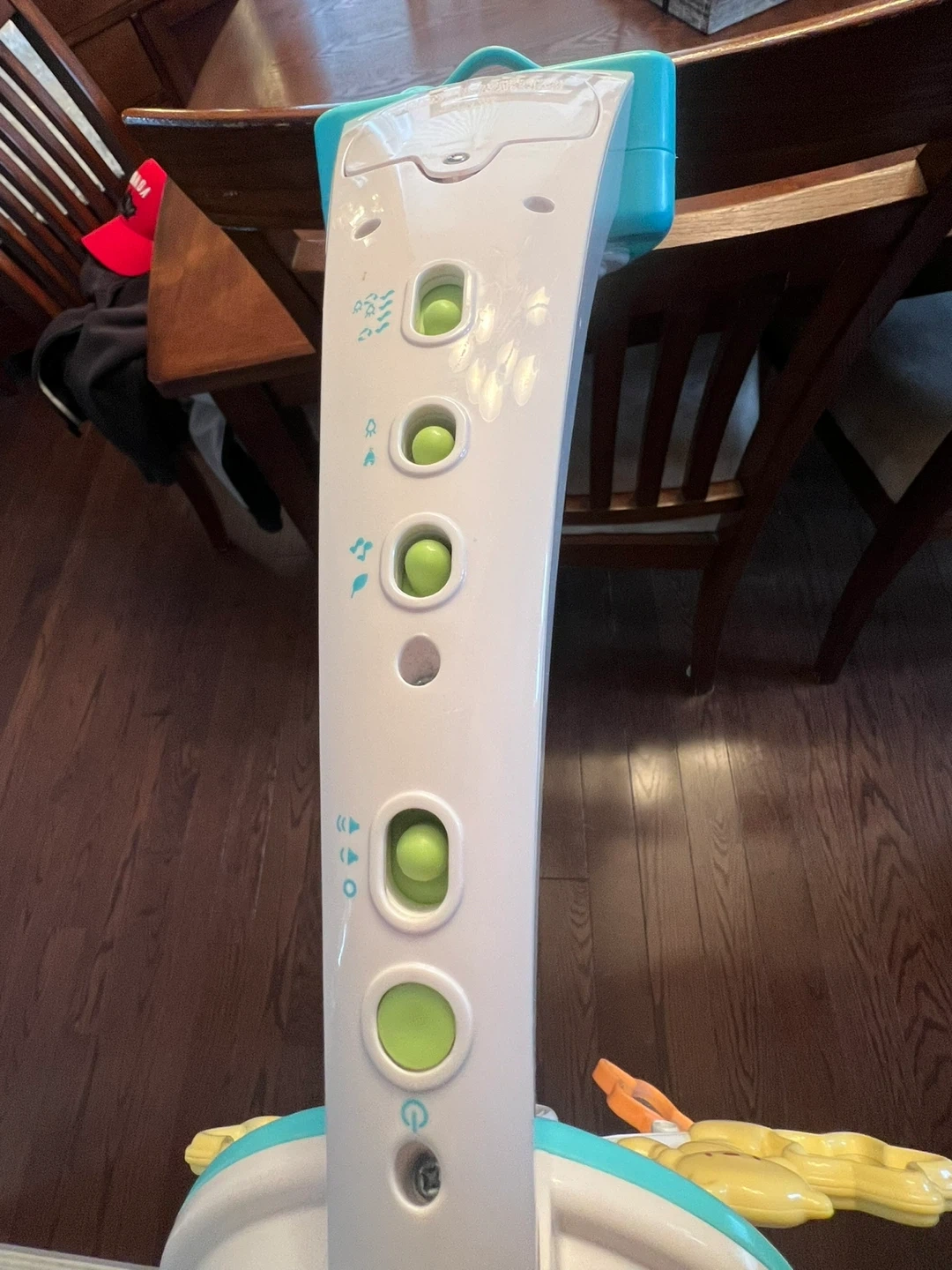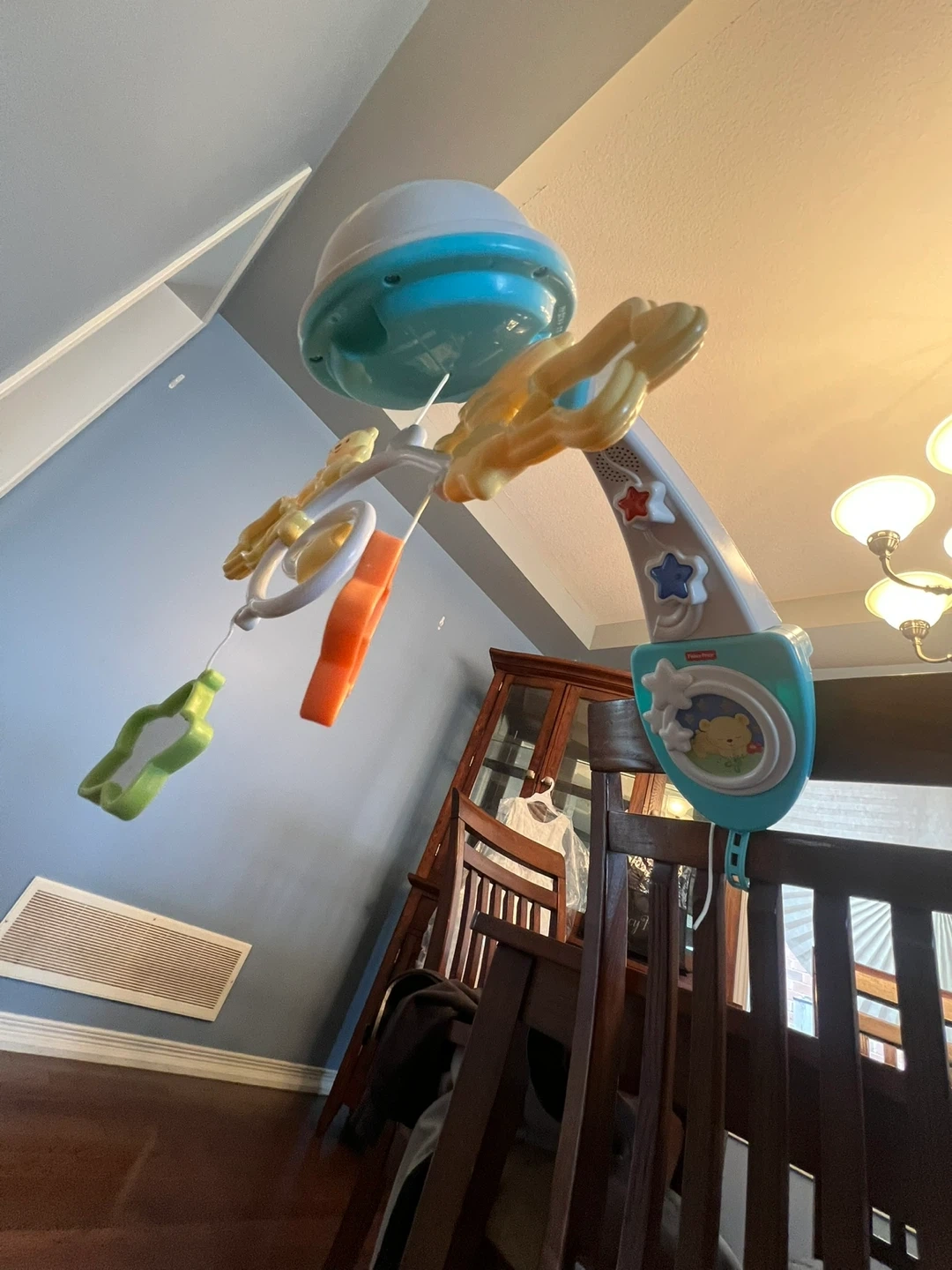 This Fisher-Price crib mobile features music and spinning toys to entertain your baby. It attaches securely to most cribs. A great addition to any nursery!