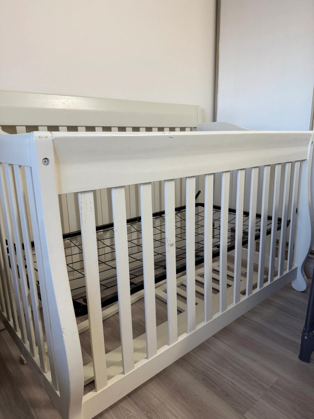 77I'm giving away white wooden crib with mattress and bumper in exchange for a watermelon. The crib is disassembled and will need to be reassembled. Pickup only from North Kildonan.