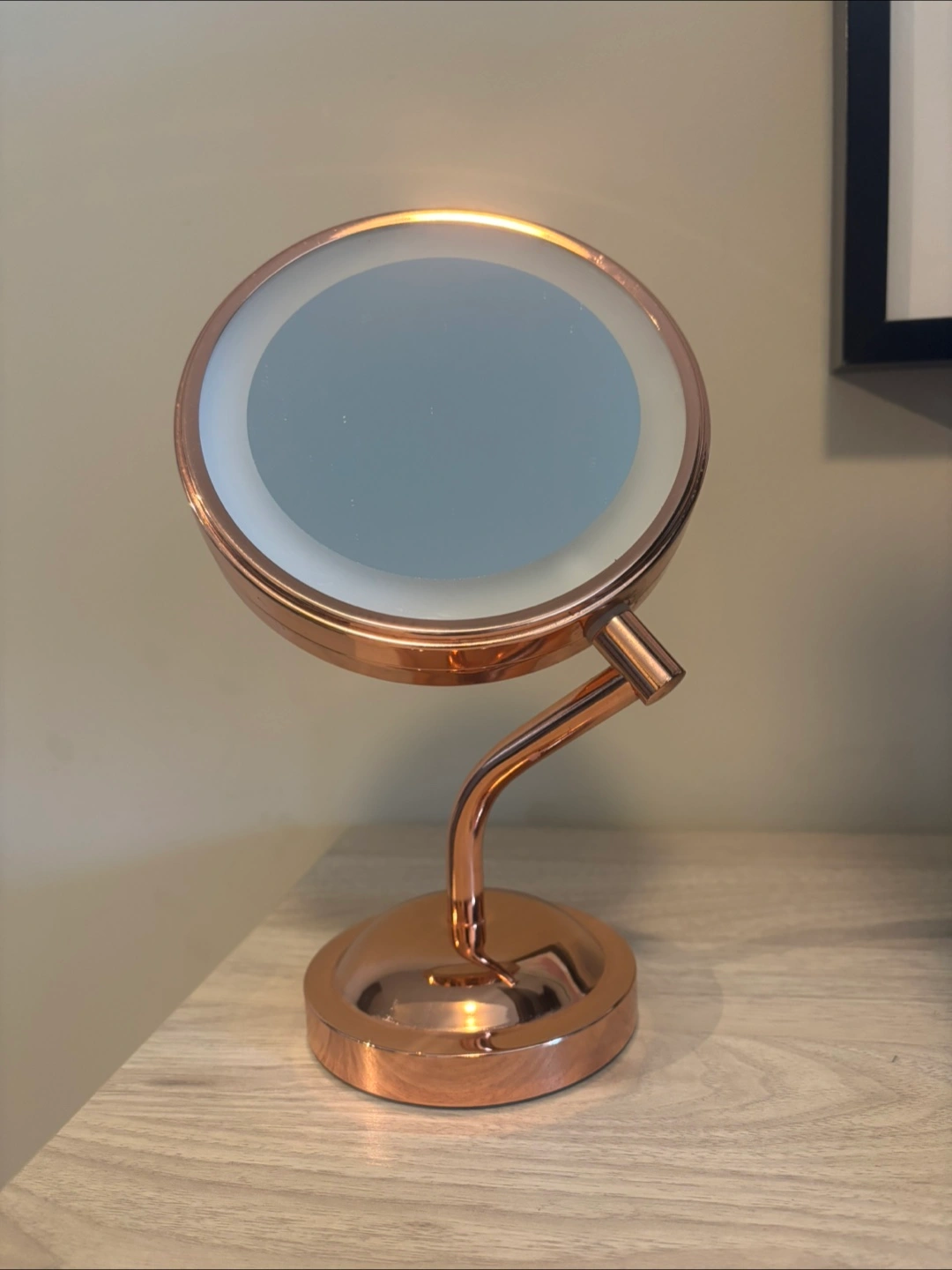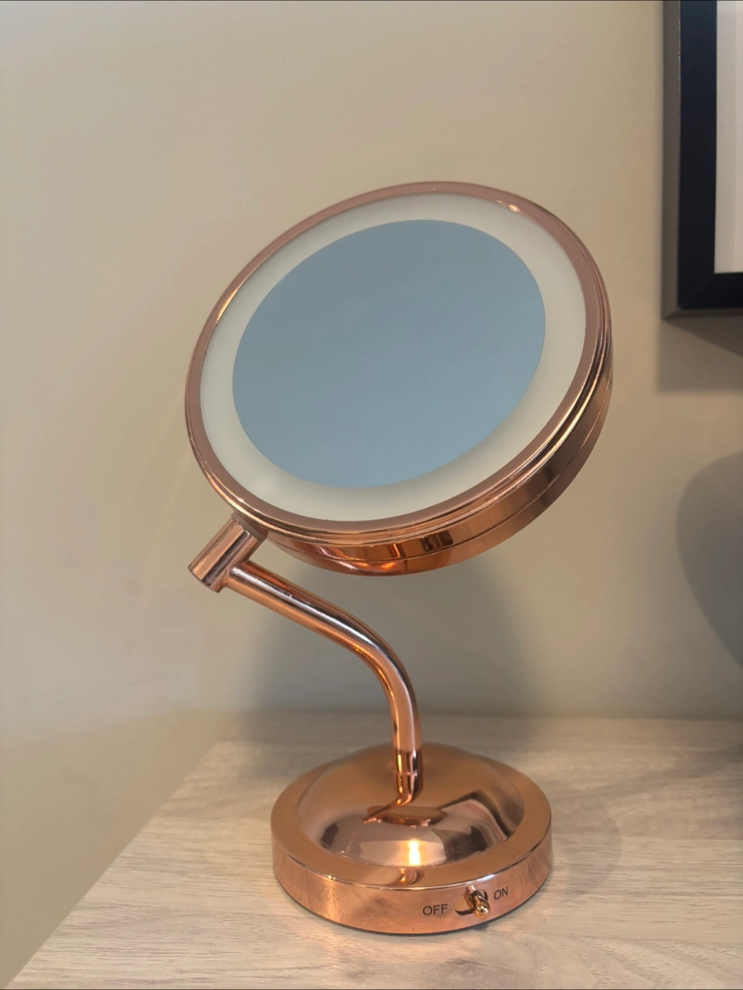 78Conair brand LED lighted collection mirror. Really useful makeup vanity mirror in a copper finish! It's perfect for getting ready and adding a touch of elegance to your space. The mirror provides great lighting for makeup application and skincare routines. It's in excellent condition and ready for a new home! Batteries not included. Pick up preferred, in Kitsilano. Cash preferred.