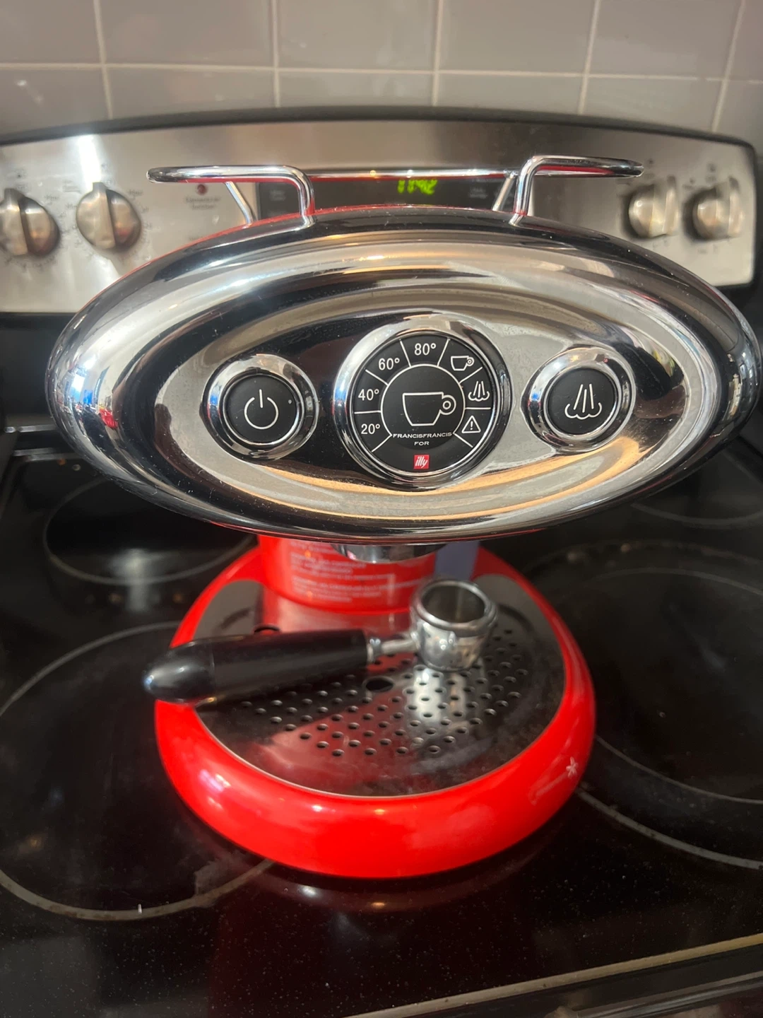 92Selling a gently used Illy Francis Francis! X1 espresso machine in a vibrant red colour! It’s in great shape and ready to make some delicious espresso. Perfect for any coffee lover!