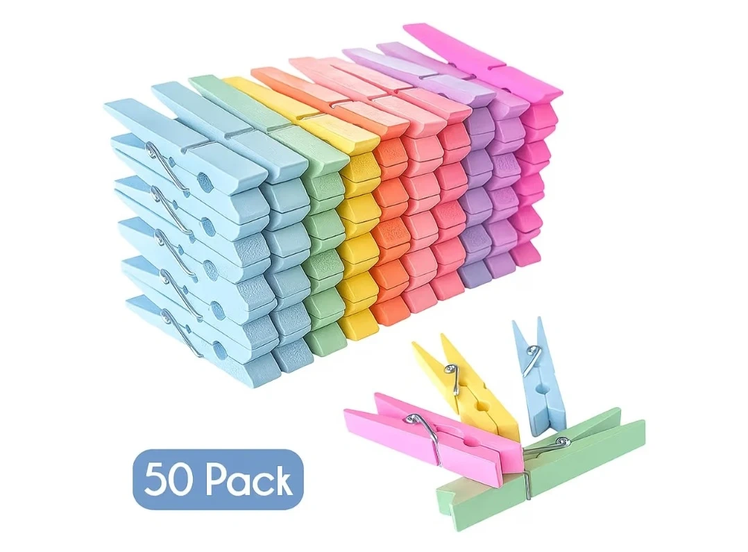 Value Pack of 50 Pastel Pins: Includes 50 high-quality, wooden clothespins in soft pastel colors—offering great value for your everyday needs and DIY projects.