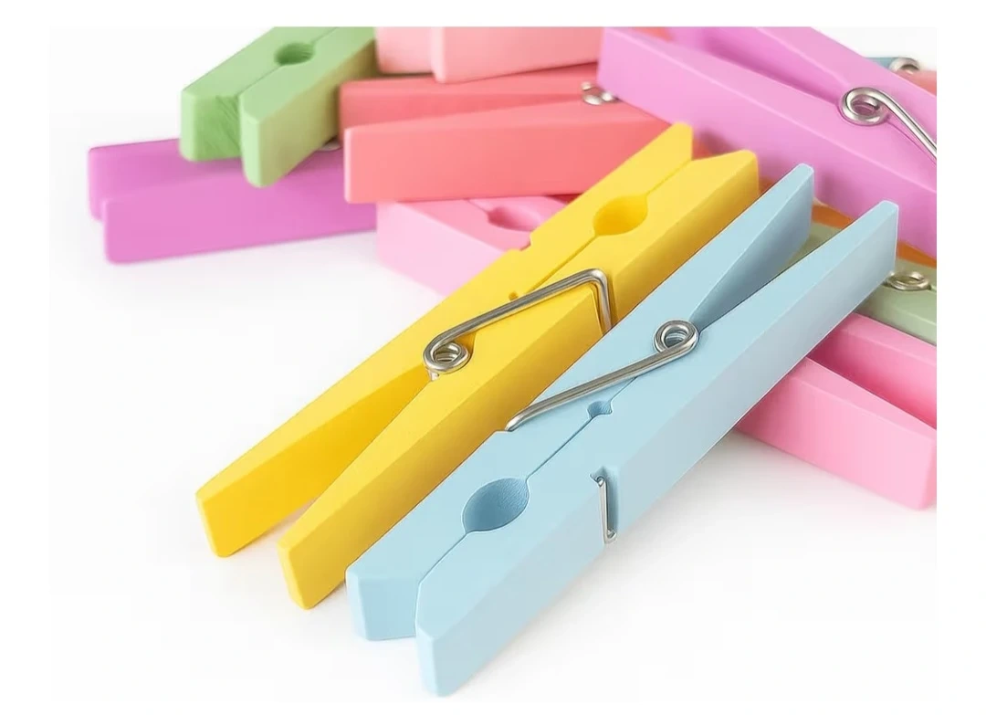 Sturdy & Durable: Crafted from premium wood and coated in gentle pastel color, these pins combine strength with style, securely holding clothes, photos, or crafts in place.
