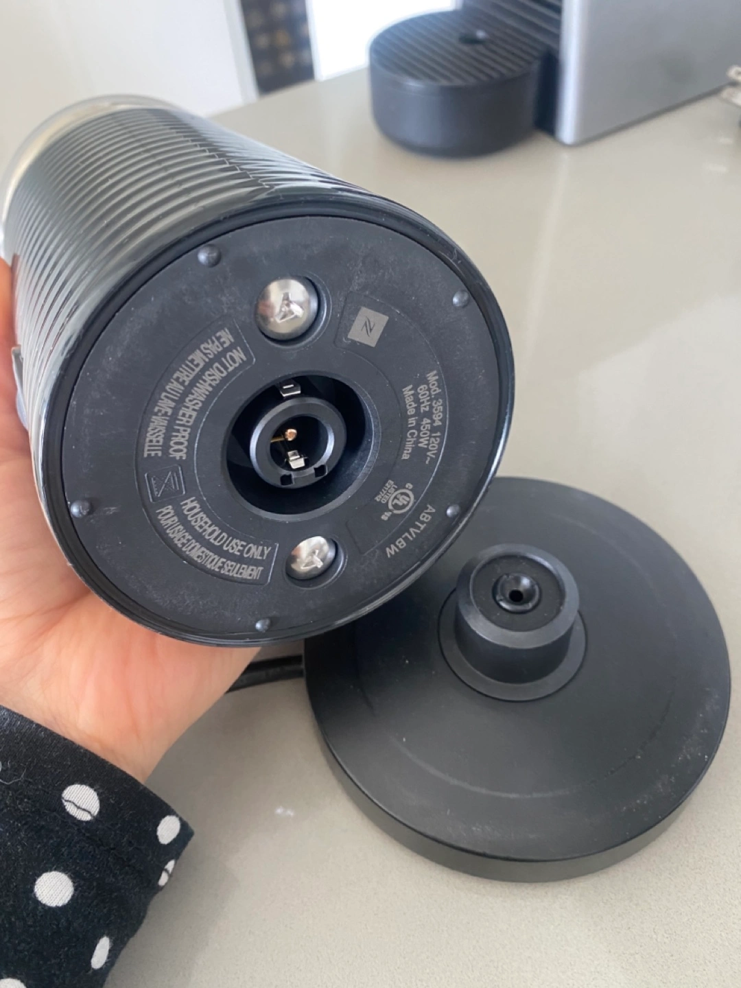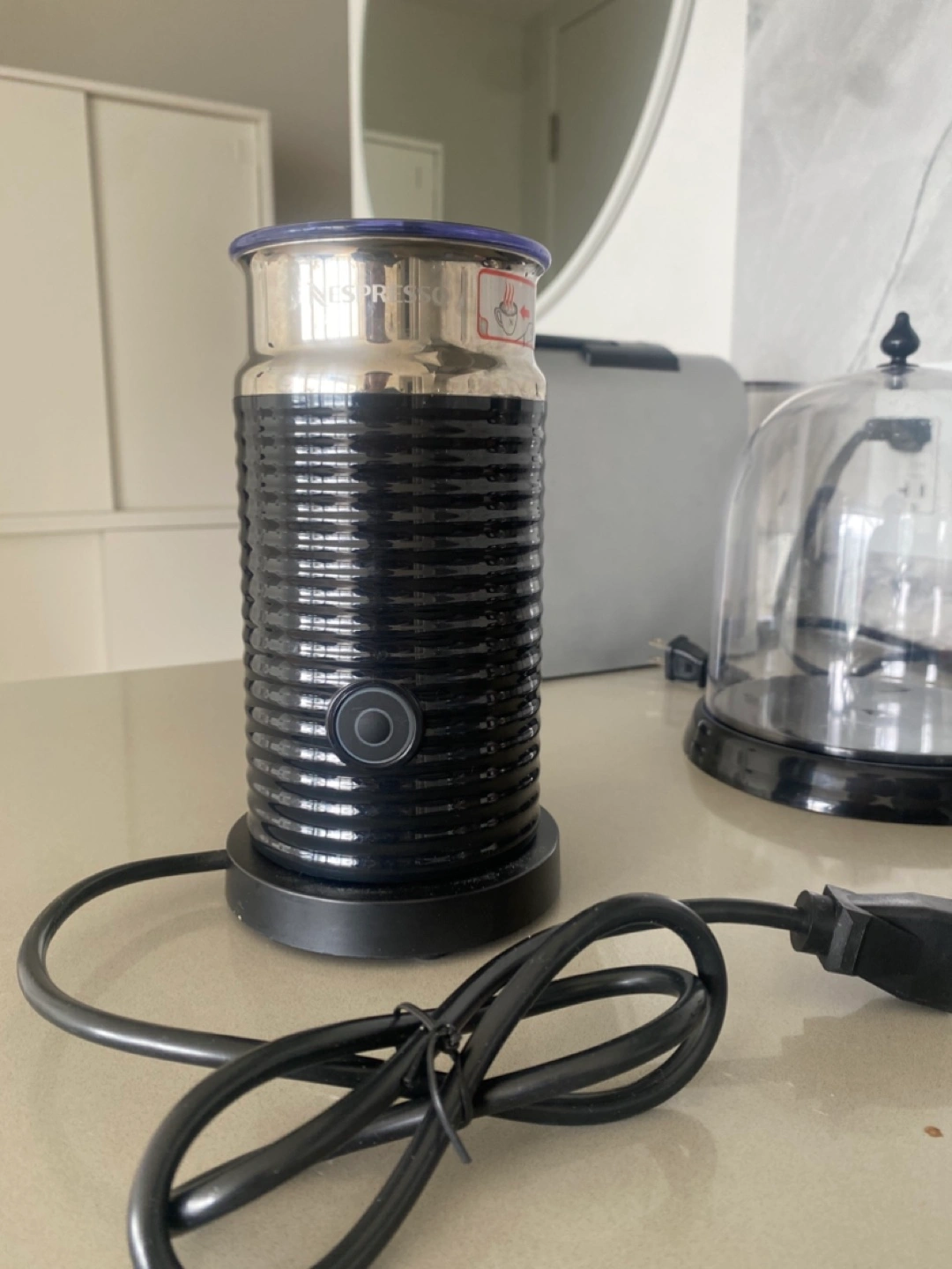 Black Aeroccino milk frother. New! Never used. good condition. Includes cord and base. Makes hot or cold frothed milk.