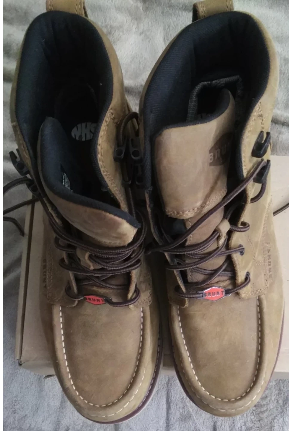 These Brunt work boots are made of brown leather and feature a waterproof design. They're a size 13.The soles show are in good condition. Perfect for demanding work environments!