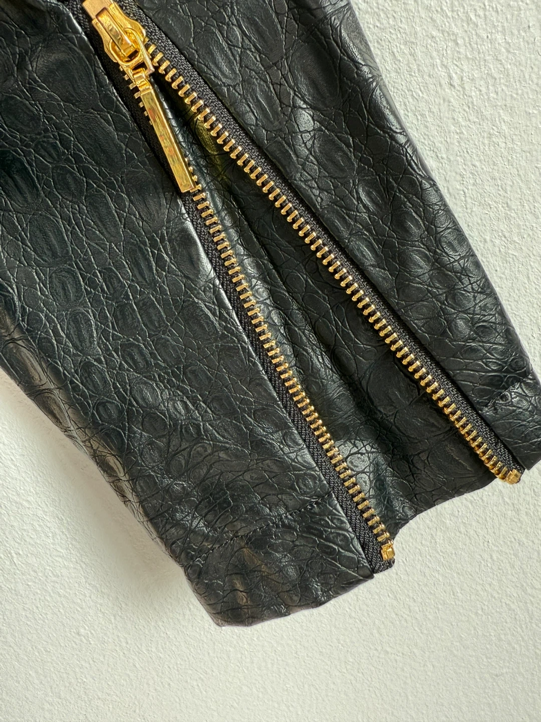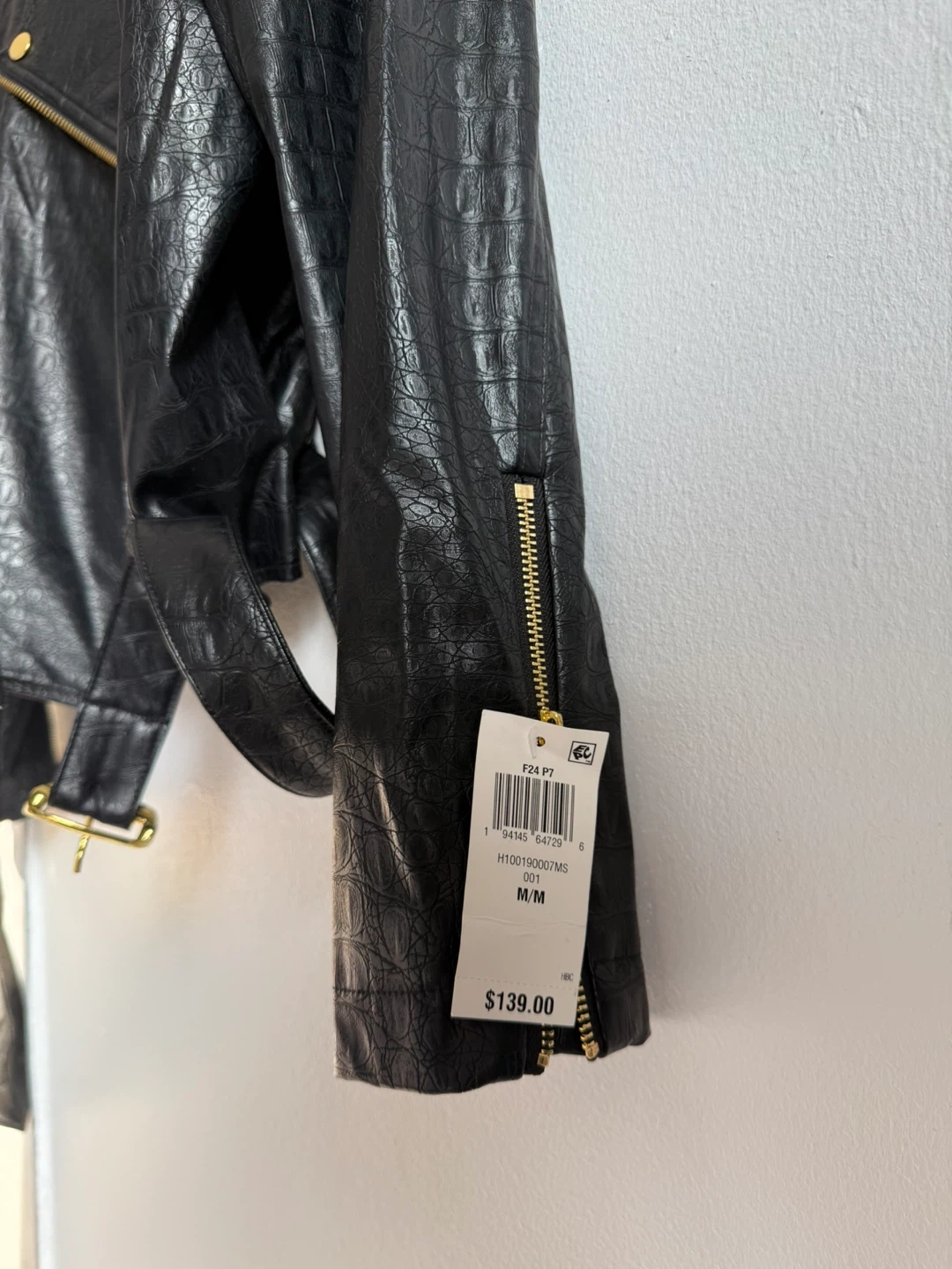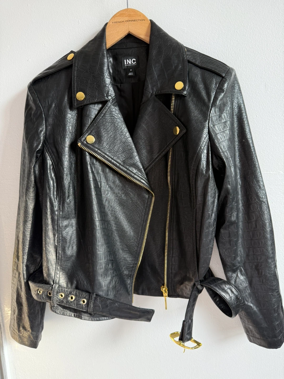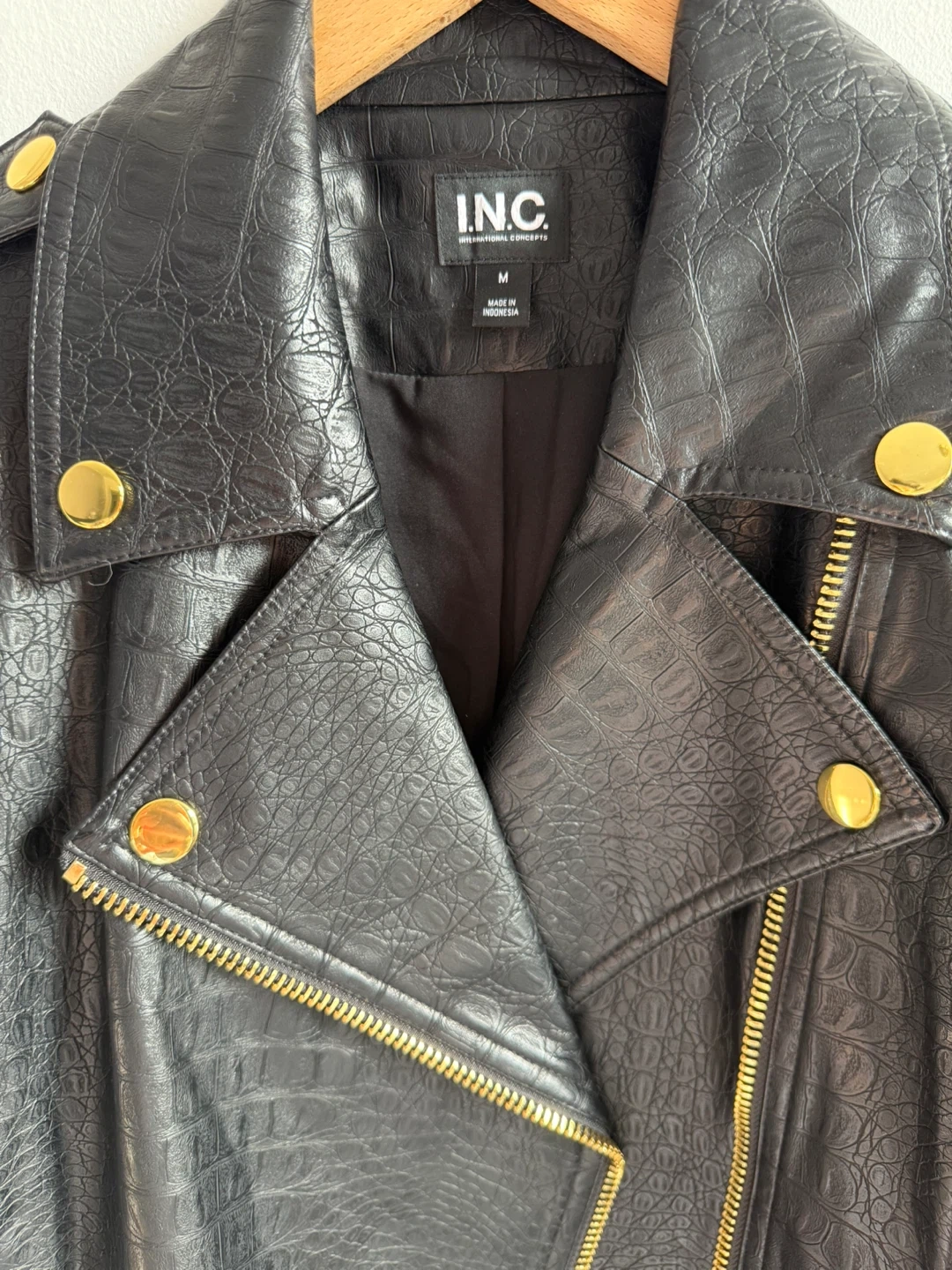 Selling a stylish INC International Concepts faux leather jacket in size medium! It features a unique crocodile-like texture and eye-catching gold hardware. Perfect for adding a bit of edge to any outfit