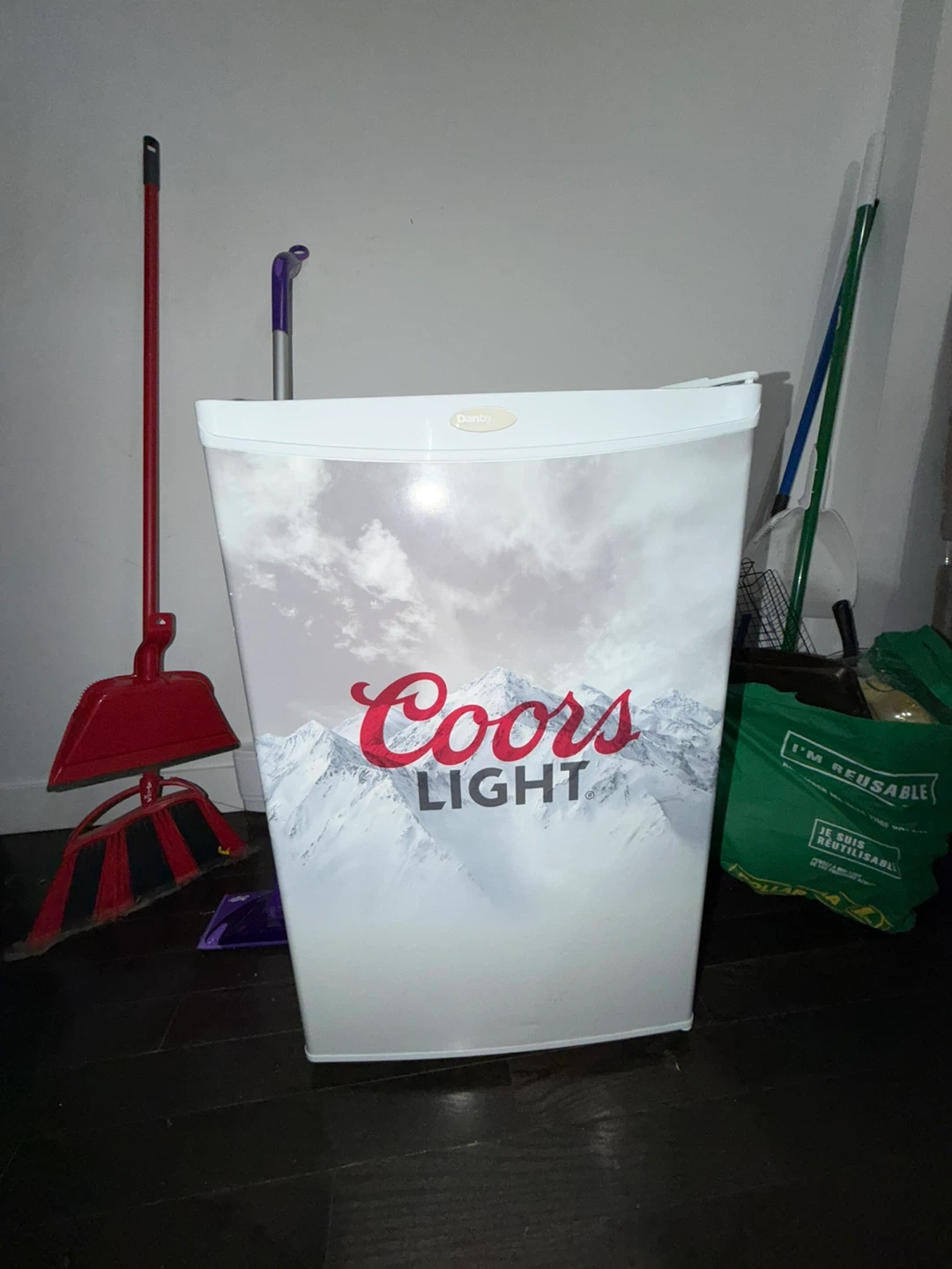 Selling a Danby mini fridge with a Coors Light design on the front. It's perfect for keeping drinks cold in a small space. The fridge is in good condition and ready to use!