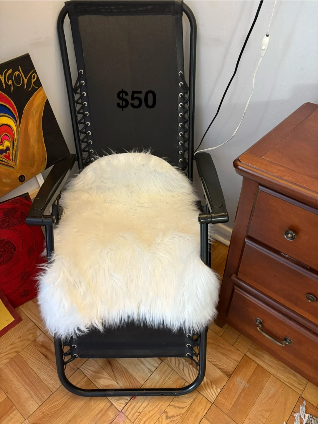 Selling a zero gravity lounge chair in black. It's in good condition and ready for a new spot on your patio or balcony! Super comfy for relaxing outdoors. Price mentioned in picture.