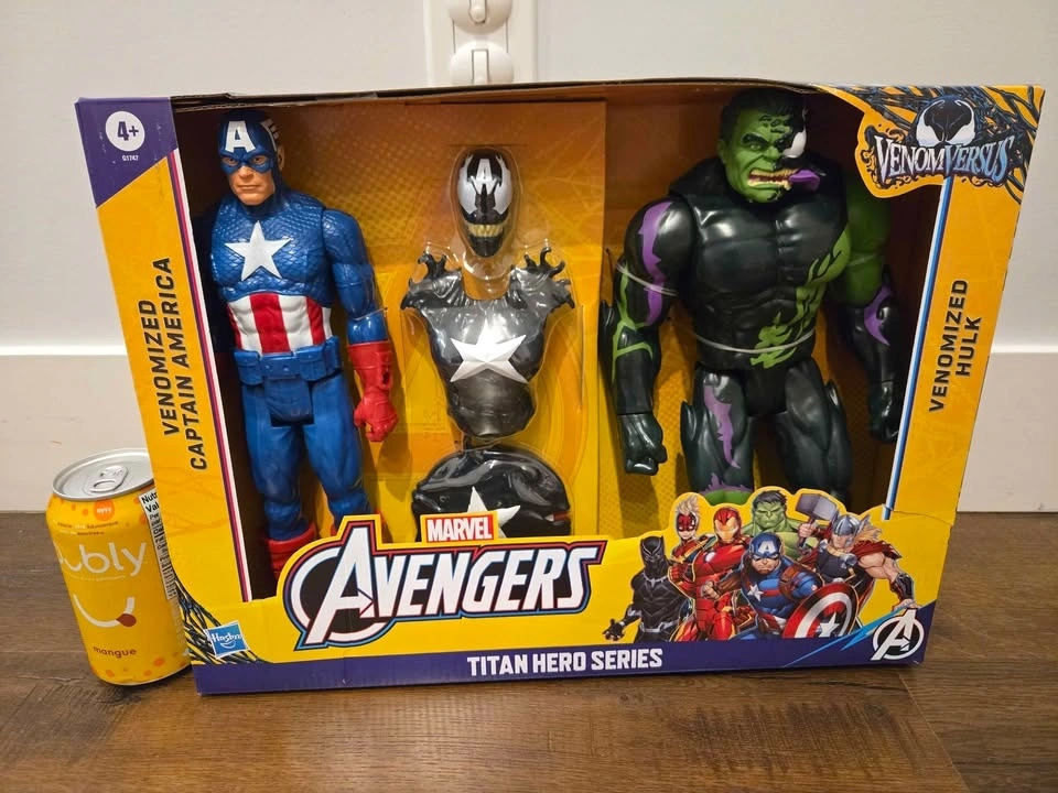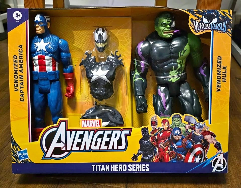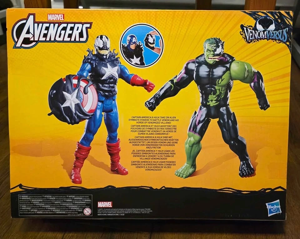 Large 12-inch (30 cm) action figures featuring Captain America & Hulk with a unique Venom-inspired look.