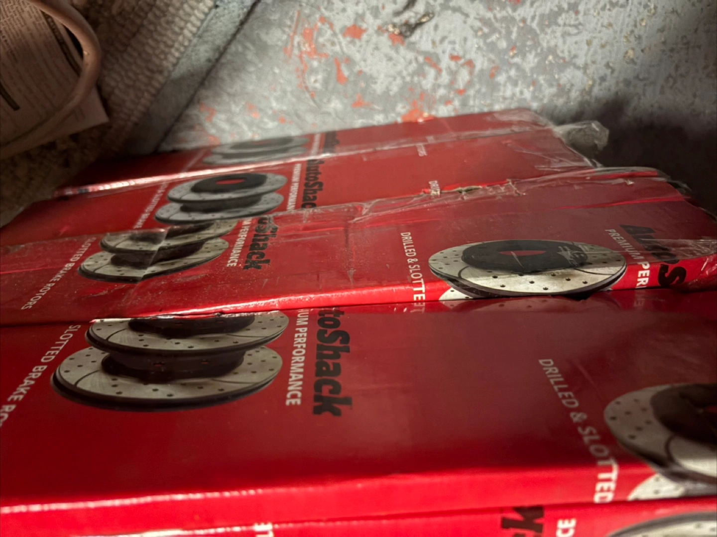 New AutoShack brake rotors and pads. Premium performance. Drilled and slotted rotors. Includes instructions. Perfect for upgrading your vehicle's braking system.