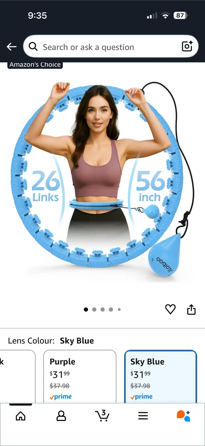 This exercise hoop features 26 detachable links, allowing you to customize its size. It has a maximum diameter of 56 inches. The weighted ball and adjustable design make it suitable for fitness routines.