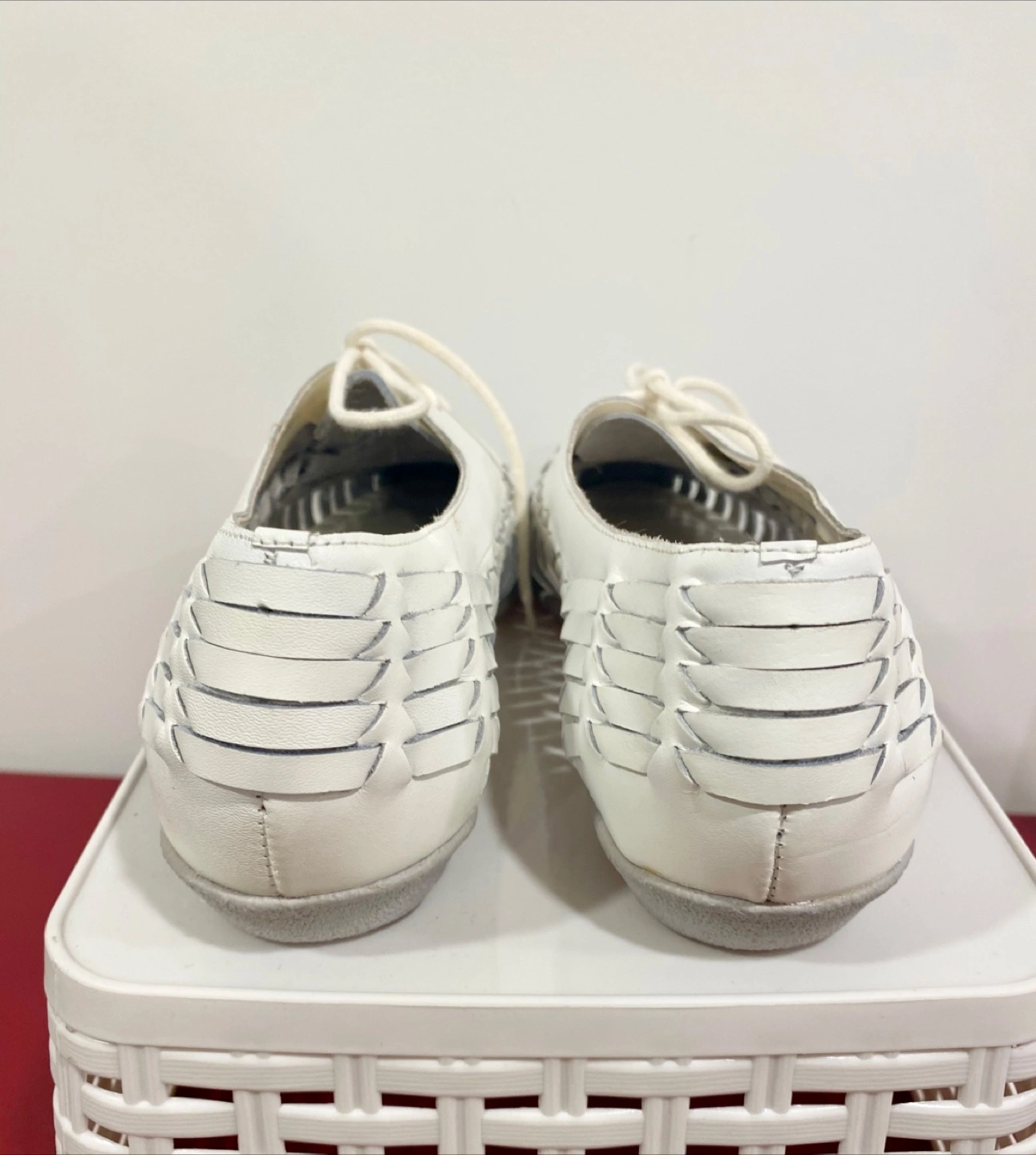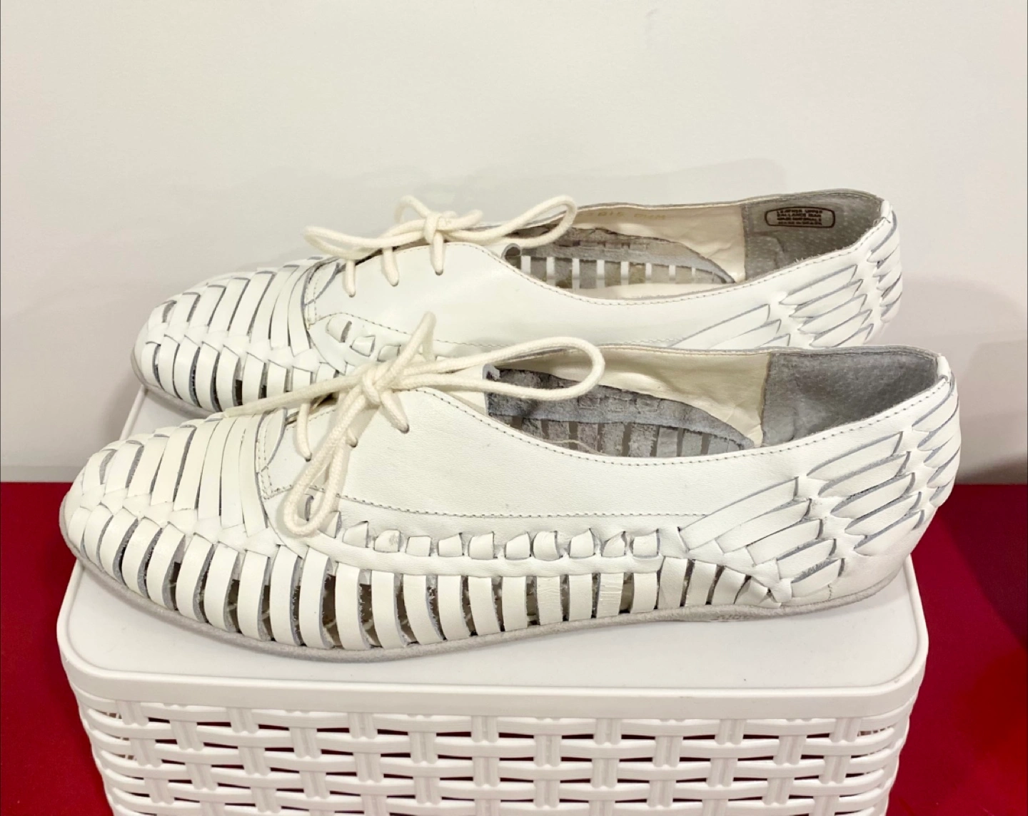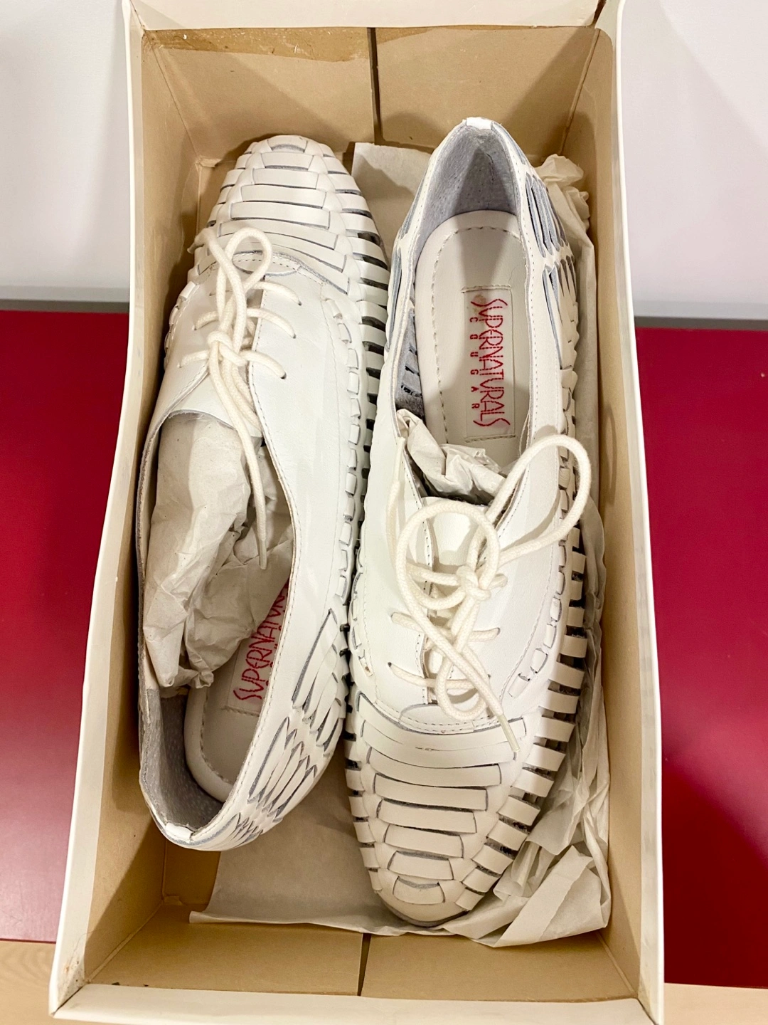 There is one small hole in the inner sole (see 4th photo), and some of the glue has yellowed due to age. Nevertheless these are gorgeous shoes.
