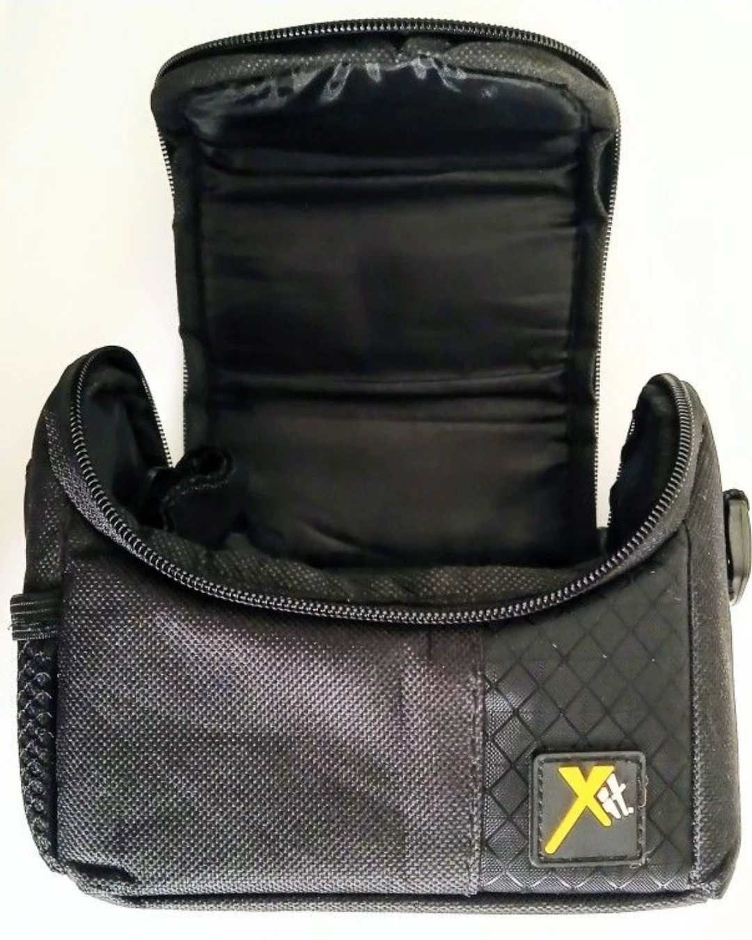 Canon PowerShot SX530HS digital camera with battery charger, lens cap, neck strap, shoulder bag and a 64gb memory card.