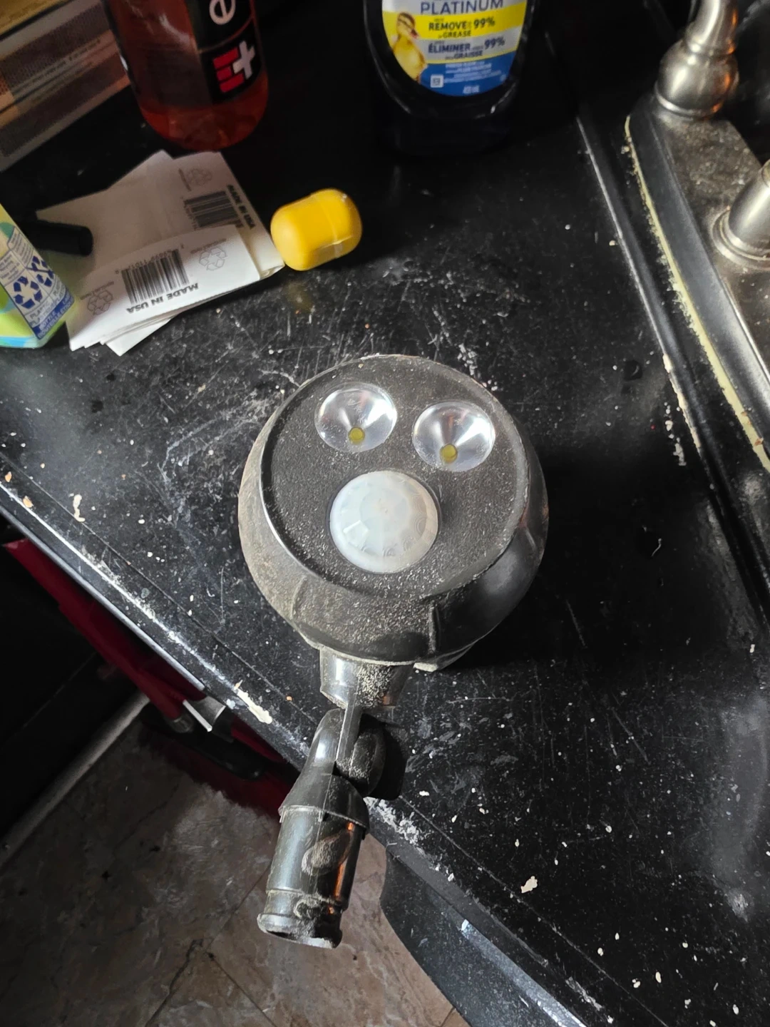 Outdoor motion-activated LED light. Easy to install and provides security lighting. Bright LEDs illuminate areas when motion is detected. Great for pathways or entryways!
