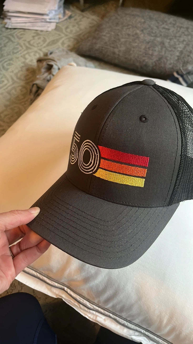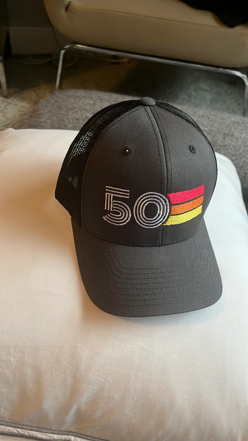 Selling a Classics trucker hat in black! It has a cool design with the number 50 and a sunset graphic. It's in great condition and ready for a new owner