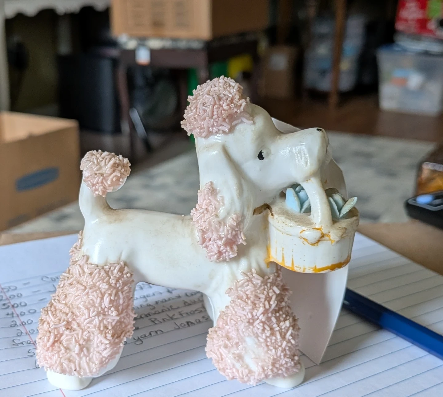Buy & SellVintage Poodle Figurine with BasketVintage Poodle Figurine with Basket$20White ceramic poodle figurine with pink fluffy accents and a basket. It has a decorative, retro look.WHERE TO MEETCheck LocationView MapSELLERJulieTim Hortons100 reviews0 chats·0 favorites·6 viewsSEND CHAT TO SELLERHi Julie! I’m interested in your listing.Hi Julie! I’m interested in your listing.Get the Karrot app to chatSign In to chat