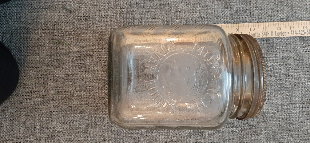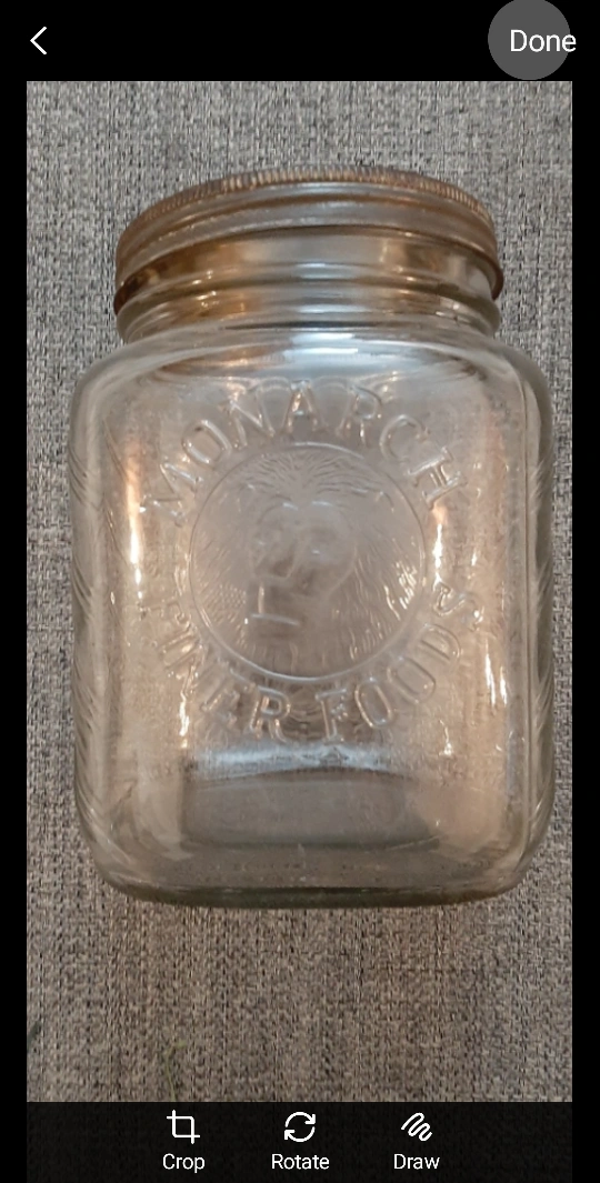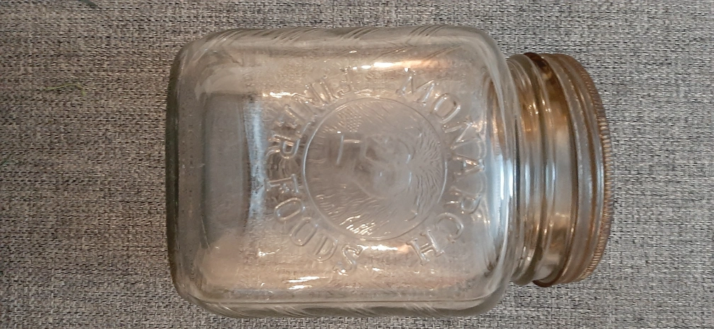 Selling a vintage Monarch Fine Foods glass jar! It's in good condition, perfect for adding a touch of retro charm to your kitchen or pantry.