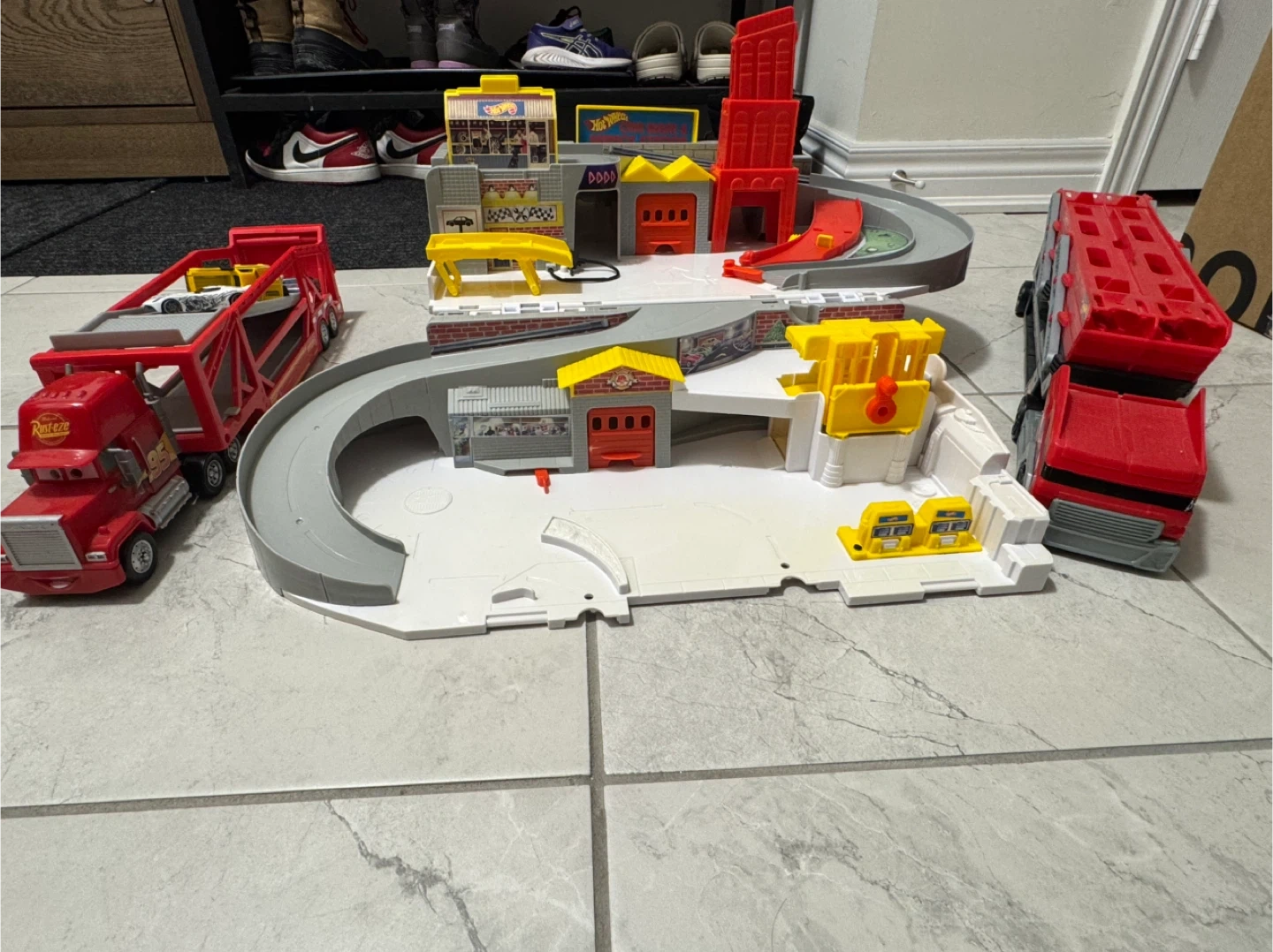 Hot wheels car wash and service case and mega haulers